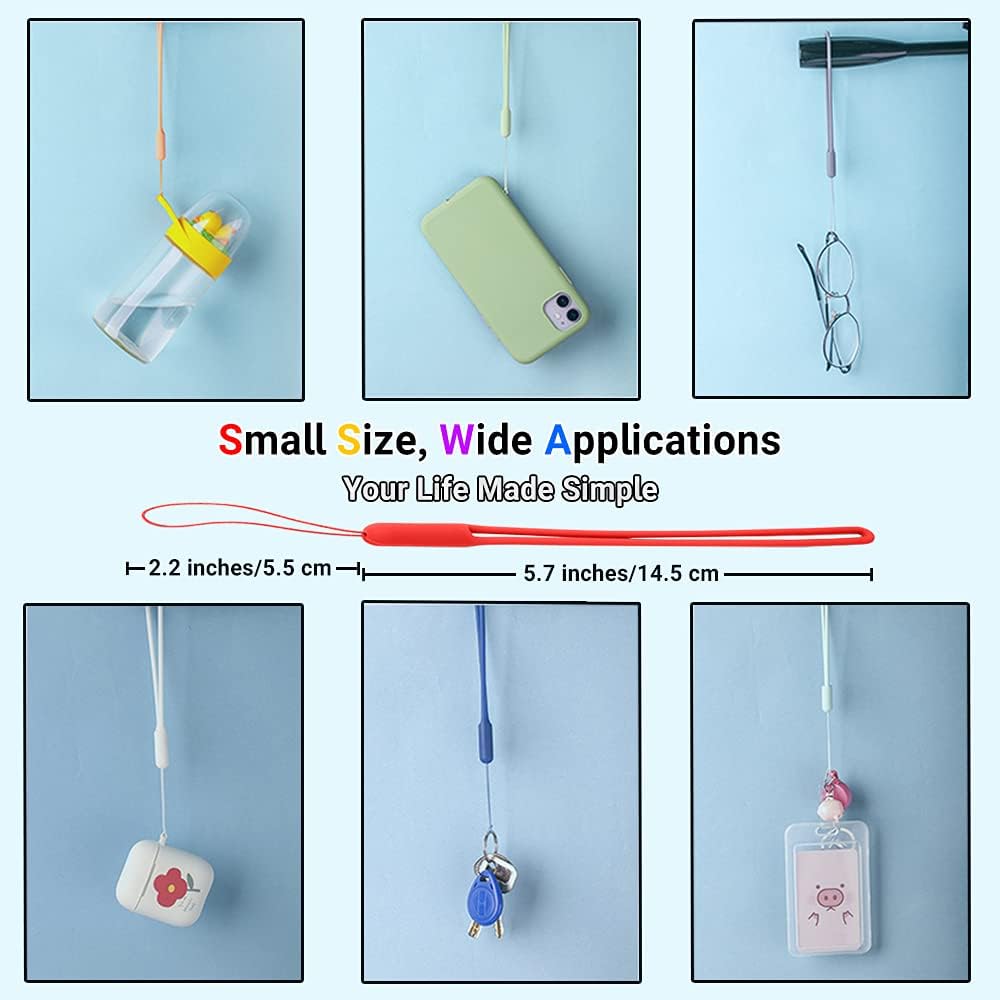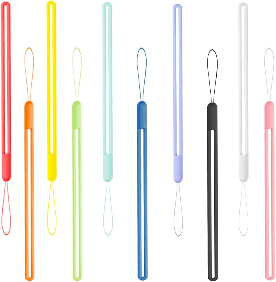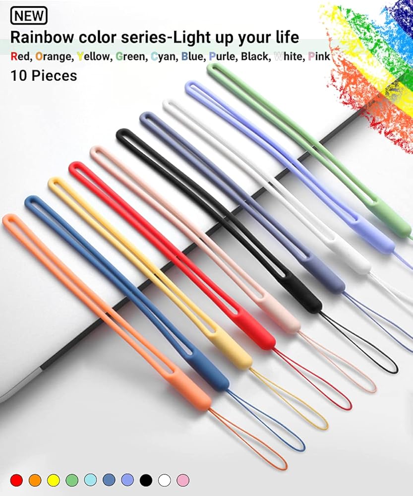 حبل معصم 10 قطع حزام هاتف من السيليكون معصم صغير قصير من مطاط السيليكون السائل للهاتف المحمول ومظلة زجاجة مياه وكاميرا USB وشارة مفاتيح محرك الإبهام (سلسلة قوس قزح)