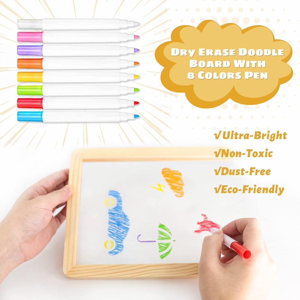 💝【ما يتضمنه】 تتضمن مجموعة لوحة الرسم الجاف للأطفال لوحة رسم جافة من الأكريليك مزدوجة الجوانب مع إطار خشبي، و36 بطاقة نشاط، و8 أقلام ألوان، و1 قلم إجابة أسود، و1 زجاجة رش، و1 قطعة قماش للتنظيف. لوحة المسح الجافة هي خفيفة الوزن بمقاس مناسب (8.7*6.7*0.6 بوصة)، مثالية لحقيبة المدرسة أو حقيبة الظهر للأطفال، لعبة رسم رائعة للمطاعم والسيارات والقطارات والطائرات. سيقضي طفلك ساعات طويلة بسعادة مع لوحة أنشطة رسومات الشعار المبتكرة الخاصة بنا.