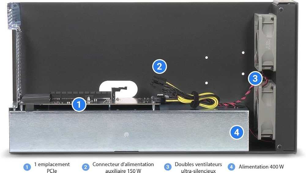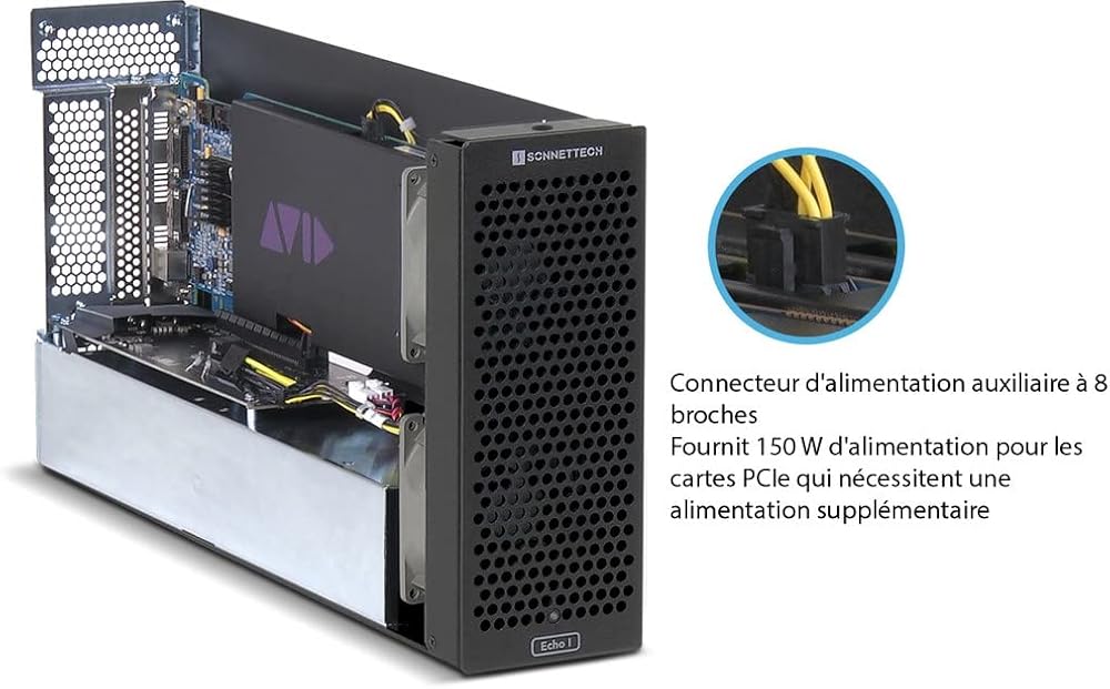 - يتم توصيل بطاقة PCIe عالية الأداء غير تابعة لوحدة معالجة الرسومات عبر كابل Thunderbolt