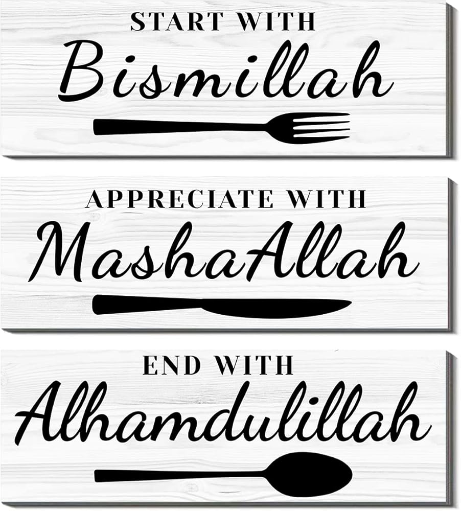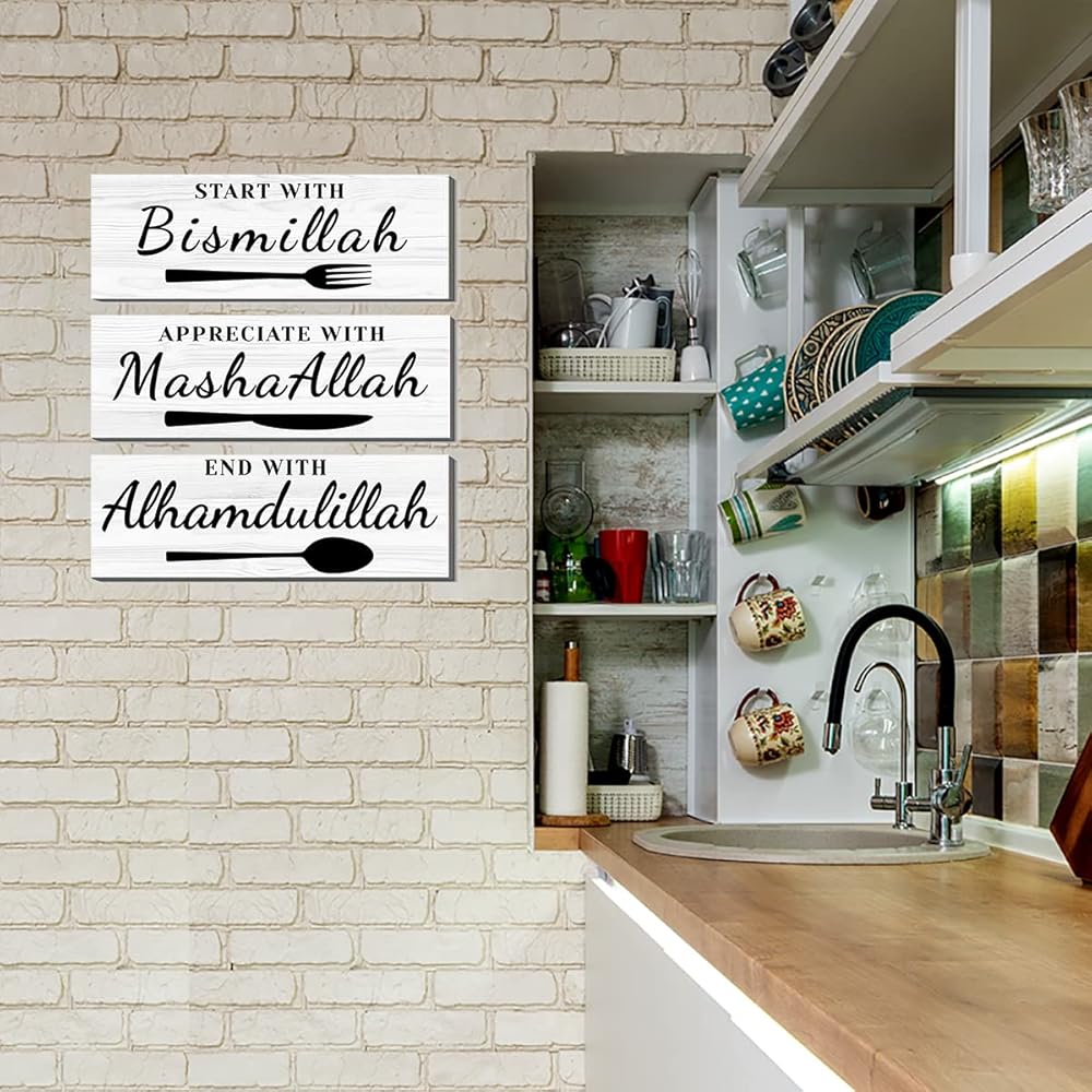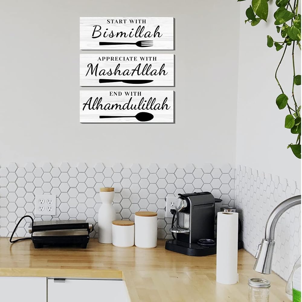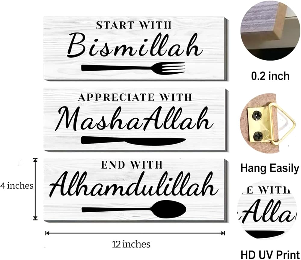 ابدأ ببسم الله، قدر بما شاء الله، وانتهى بعلامة الحمد لله، مقاس ديكور الحائط تقريبًا: 4 × 12 بوصة × 3 ألواح وسمكها حوالي 0.2 بوصة