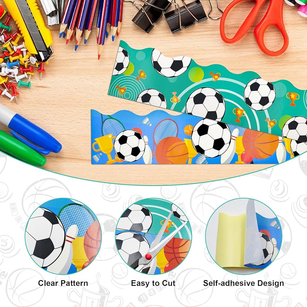 • تشمل العبوة: تحتوي العبوة على 70 قطعة من حدود لوحة الإعلانات ذات الطابع الرياضي بتصميمين، 35 ورقة من كل تصميم، الكثير منها لتلبية احتياجاتك التزيينية المختلفة.