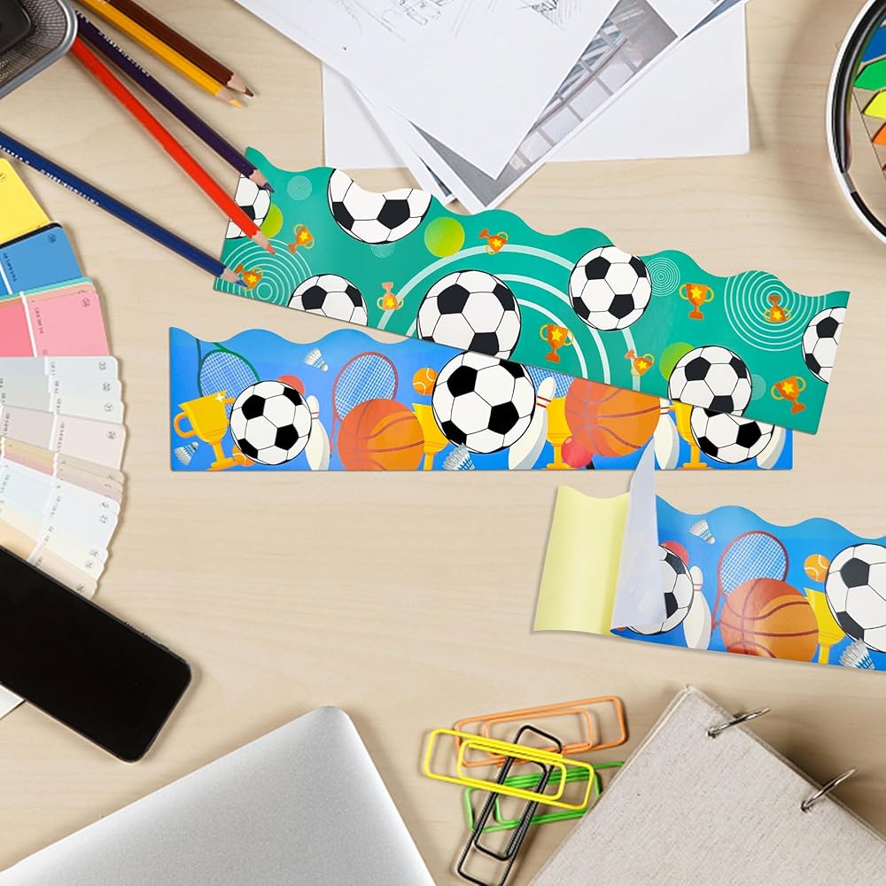 70 قطعة من حدود لوحة الإعلانات الرياضية، ملصقات حدود نشرة كرة القدم على شكل صدفي، حواف حدود الفصول الدراسية لكرة السلة لسبورات الطباشير المدرسية، ديكور لوحات الإعلانات المكتبية
