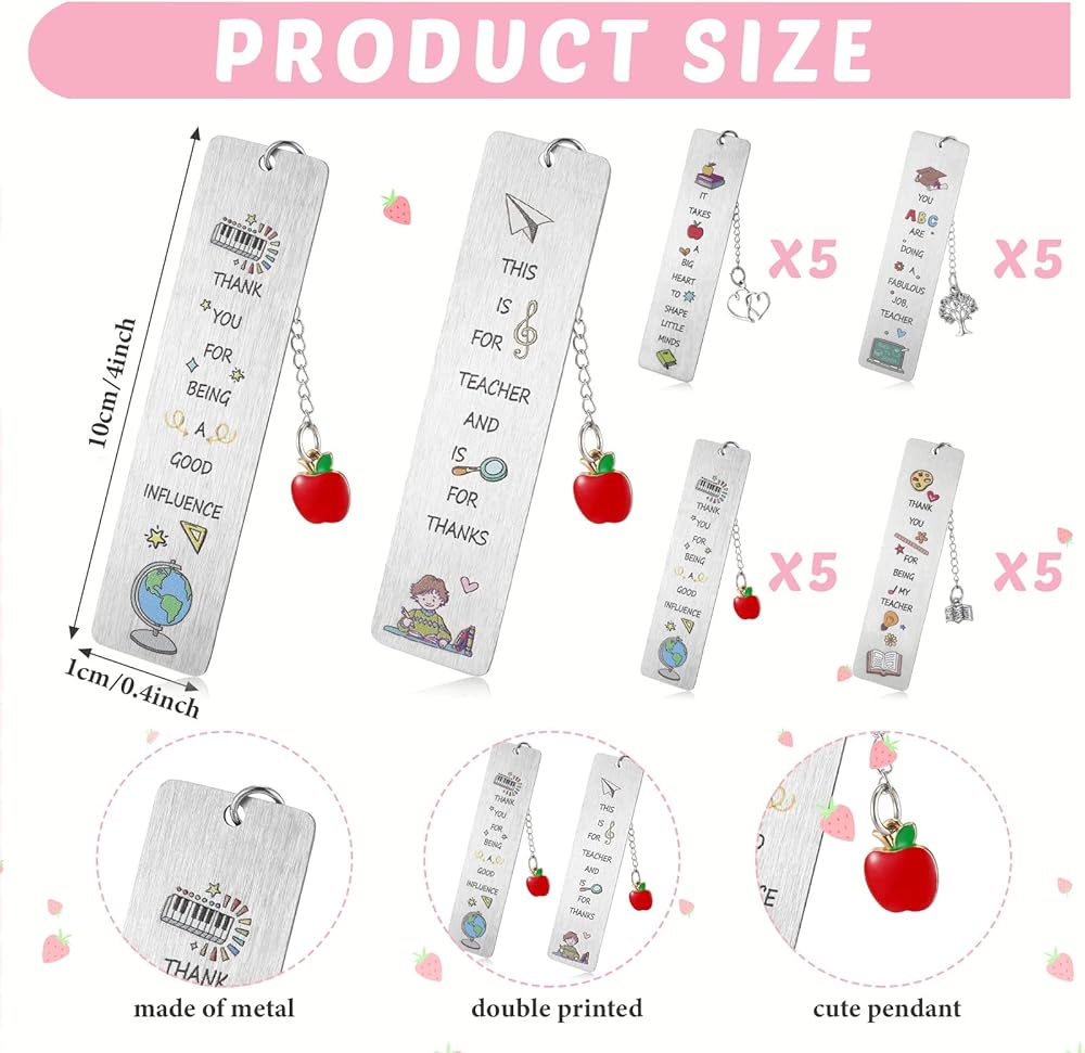 ما يتم توفيره لك: الحزمة التي ستتلقاها تأتي مع 20 قطعة من الإشارات المرجعية لتقدير المعلمين، والتي تتوفر في 4 تصميمات، 5 قطع لكل تصميم؛ الكمية الوفيرة والتصميمات المختلفة يمكن أن تلبي احتياجاتك من إرسالها إلى معلمي المواد المختلفة، ويمكنك مشاركتها مع عائلتك وأصدقائك المعلمين