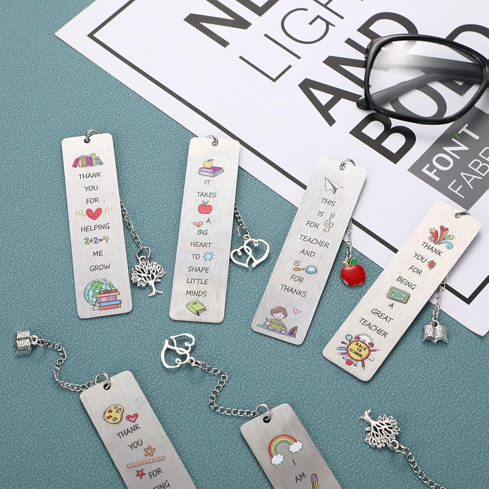 أظهر تقديرك: تتم طباعة علاماتنا المرجعية المعدنية مع العديد من الكلمات والجمل المتعلقة بموضوع شكر معلمك بالإضافة إلى بعض الأنماط اللطيفة مثل أقلام الرصاص والقلوب والكتب وقوس قزح والنجوم وما إلى ذلك، حتى تتمكن من إرسالها إلى المعلمين كهدايا التخرج