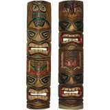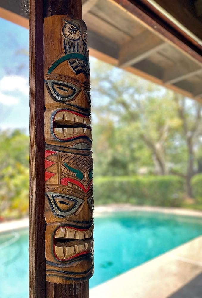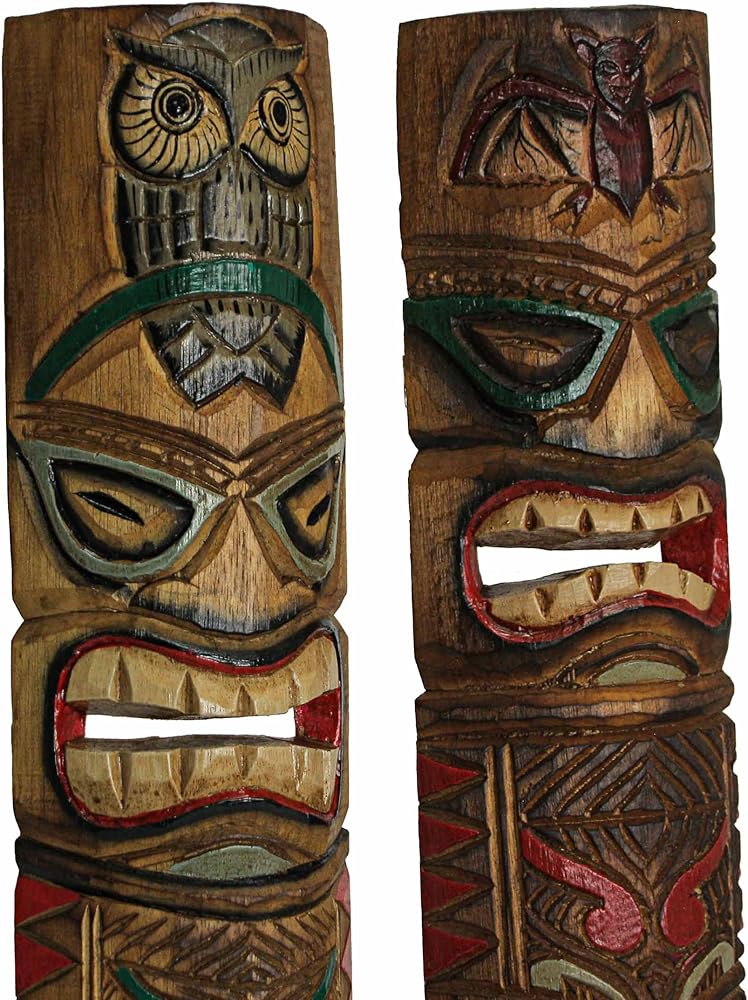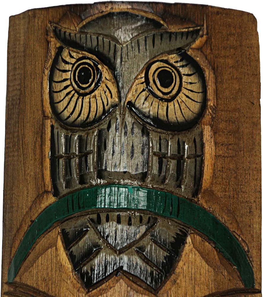 مجموعة من 2 منحوتات قناع الحائط الخشبية المعلقة يدويًا - بومة وخفافيش لديكور المنزل الداخلي والخارجي - مصنوع من الحرفيين - ارتفاع 24 بوصة - احتضان الأناقة الاستوائية