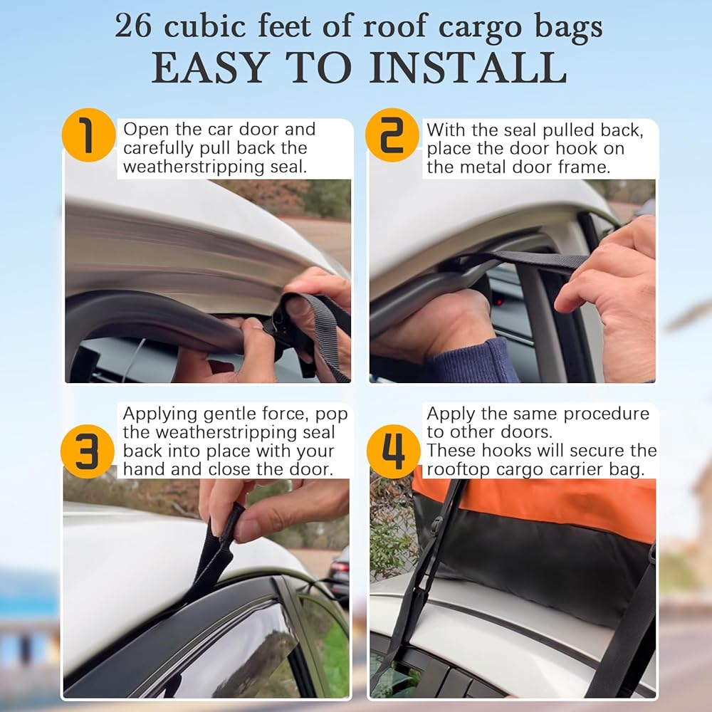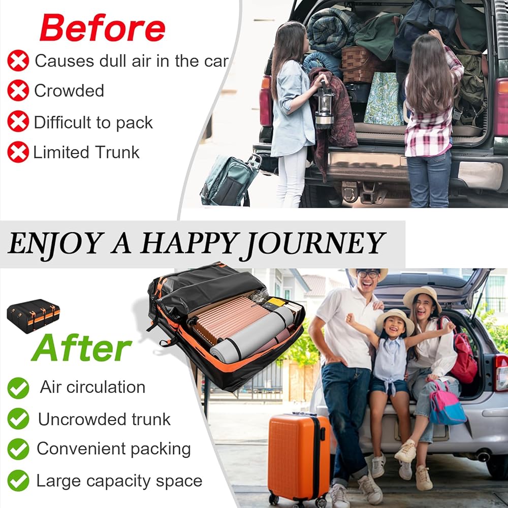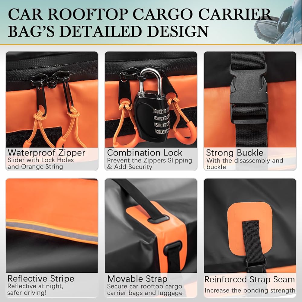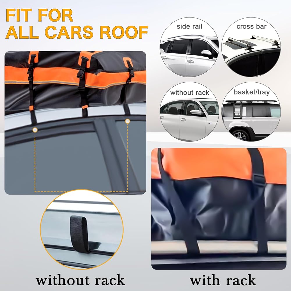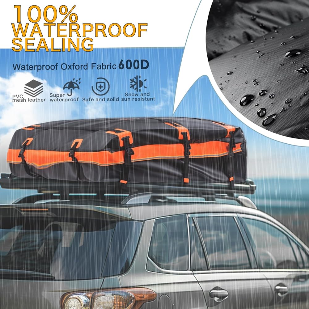 ✅ حامل البضائع على السطح مقاوم للماء: حامل البضائع على سقف السيارة الخاص بنا مصنوع من مادة PVC المقاومة للماء 500D. بالإضافة إلى ذلك، يضمن تصميم السحاب المقاوم للماء + 6 بوصات بسحاب فيلكرو بعرض إضافي بقاء أغراضك جافة في مختلف الظروف الجوية ومحمية من المطر والثلج. أو تآكل الطين. جميع طبقات حقيبة سقف السيارة هذه ملحومة ومخيطة بالحرارة، مما يجعلها مقاومة للماء بشكل كبير. لا داعي للقلق بشأن تلف الأشياء الثمينة، مما يجعل رحلتك أكثر أمانًا.