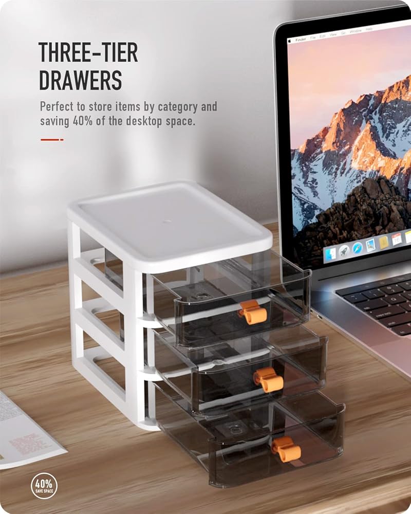 أدراج شفافة - يتميز منظم سطح المكتب هذا بأدراج شفافة، مما يسمح لك بالعثور على العناصر في لمحة واحدة. ليس عليك البحث في الصندوق عما تريد، مما يوفر الوقت والجهد.