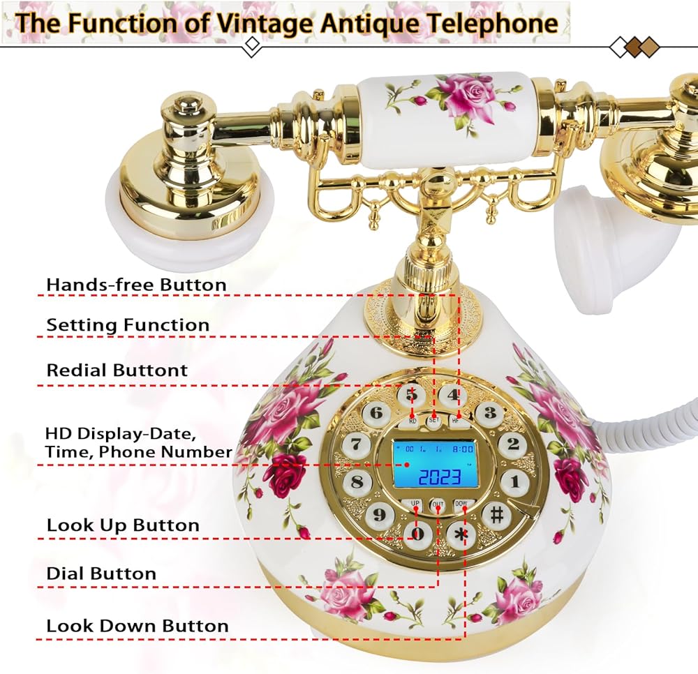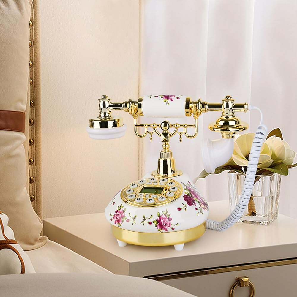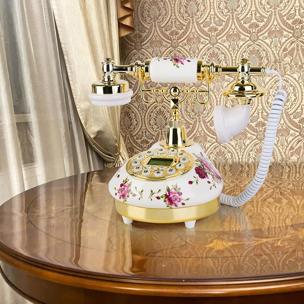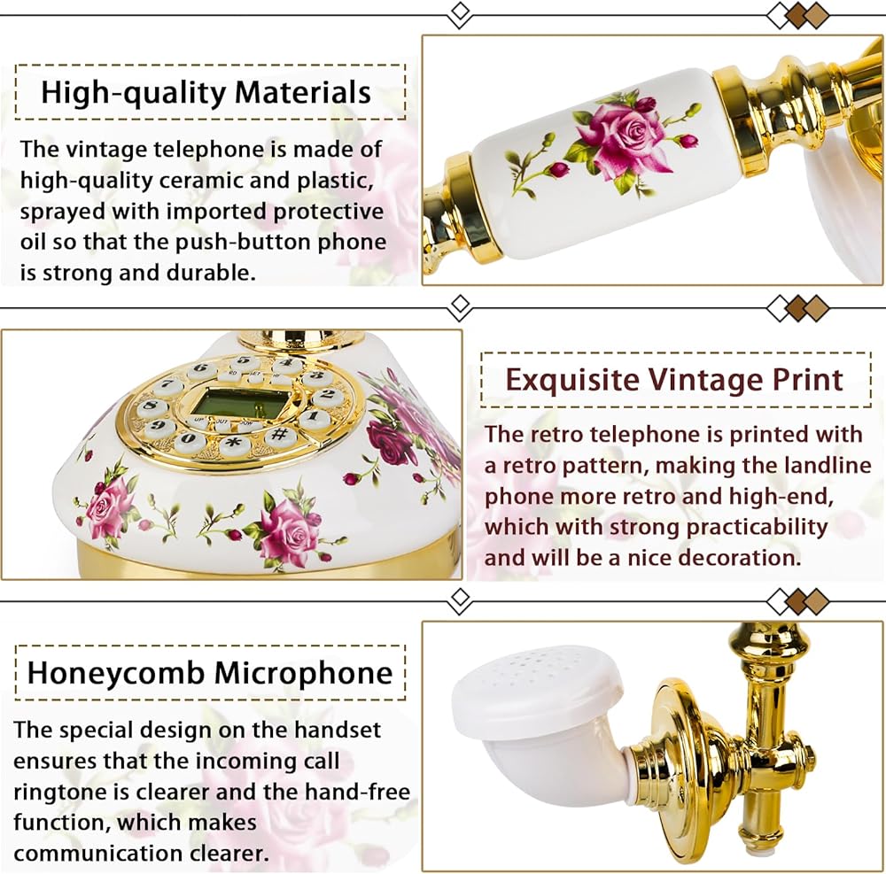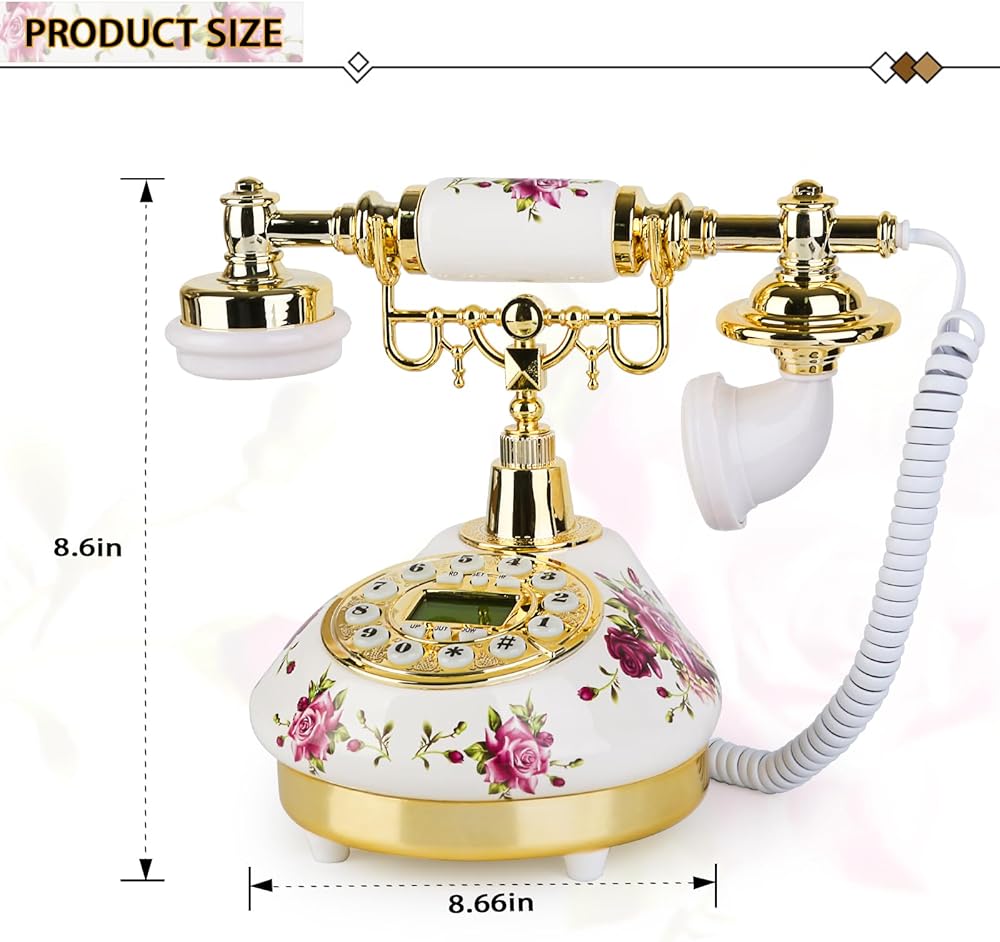 【صنعة متقنة】: مصنوع من السيراميك الأبيض الفاخر، ملصق رائع وعملية الطلاء الكهربائي تجعل هاتفنا الأرضي يشعر بمزيد من الرجعية والتقدم، وهو مثالي لتزيين المنزل أو هدية مفاجئة.