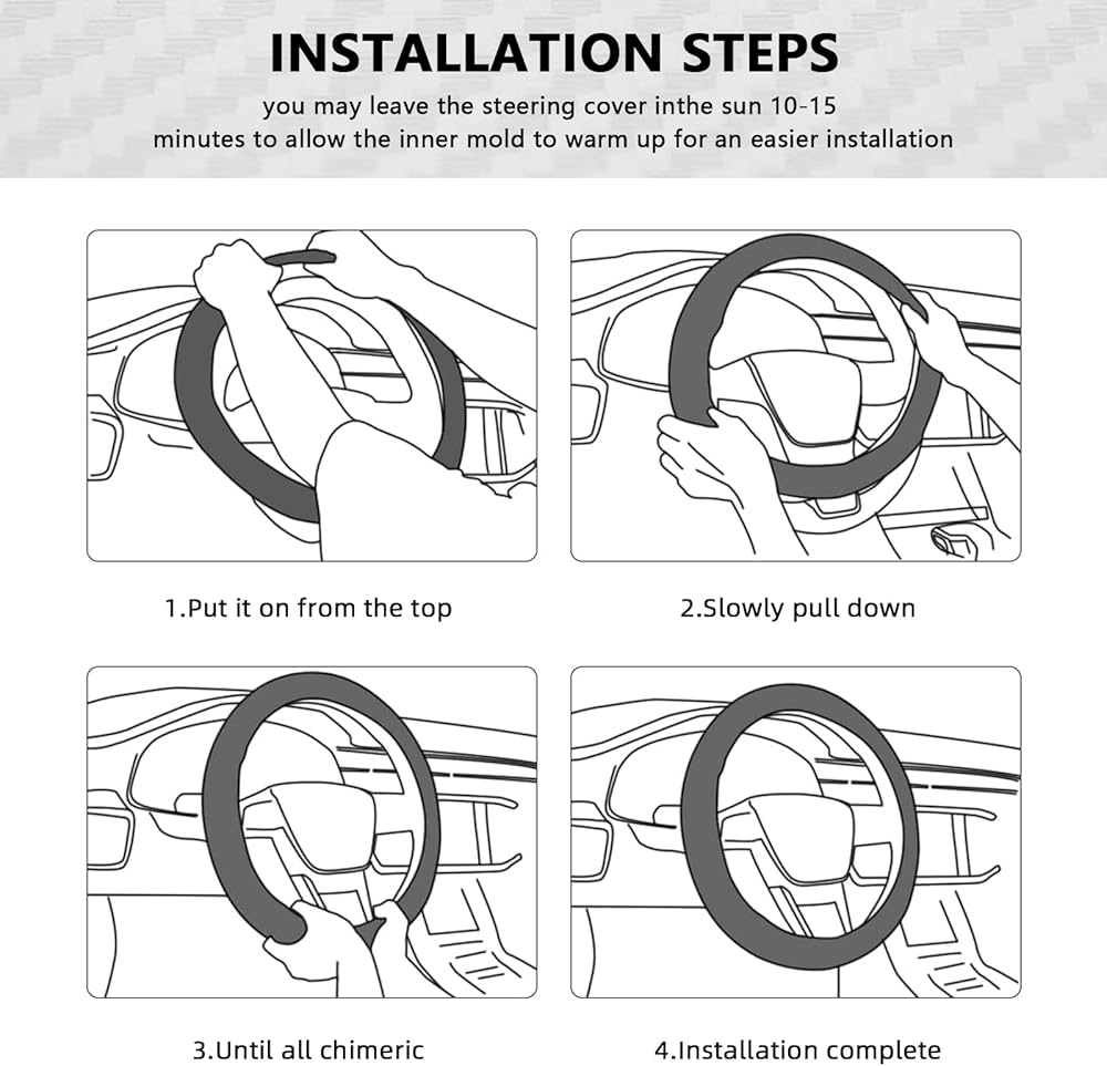 سهل التركيب: ضع الغطاء أعلى عجلة القيادة. اضغط مع الاستمرار على الجزء العلوي من الغطاء وقم بخفضه تدريجيًا بكلتا يديك على كلا الجانبين لإحكام ربطه. في بعض الأحيان يكون التثبيت صعبًا، لسهولة التركيب، يمكنك تسخين غطاء التوجيه في الشمس أو استخدام مجفف الشعر. استرداد الأموال بنسبة 100% خلال 90 يومًا ومعلومات الضمان: قدمنا فترة ضمان لمدة 93 يومًا من تاريخ الشراء.