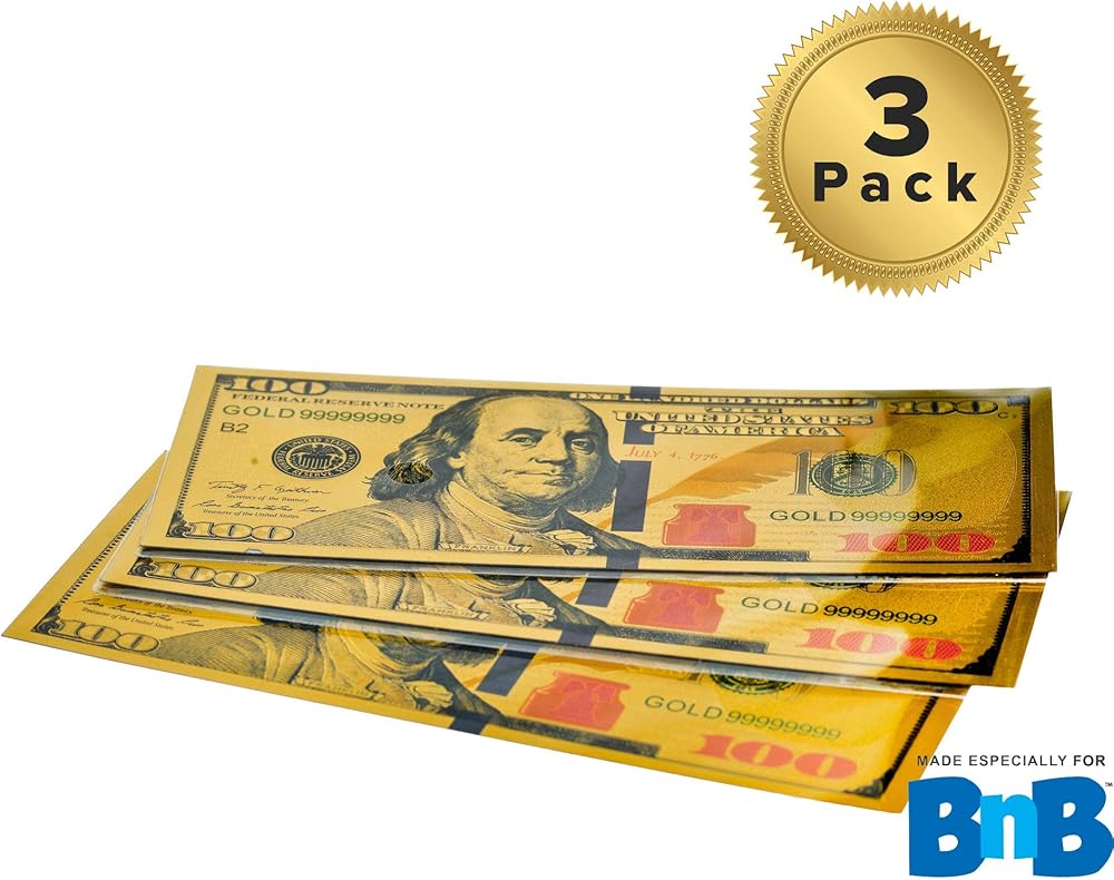 3 علامات مرجعية ممتازة للفواتير الذهبية بقيمة 100 دولار - علامة كتاب سميكة عالية الجودة لتعزيز القراءة بتصميم مذكرة بنكية بقيمة مائة دولار أمريكي - جائزة رائعة للفصول الدراسية ونوادي الكتب والمكتبات (3 عبوات)