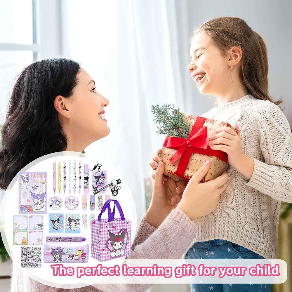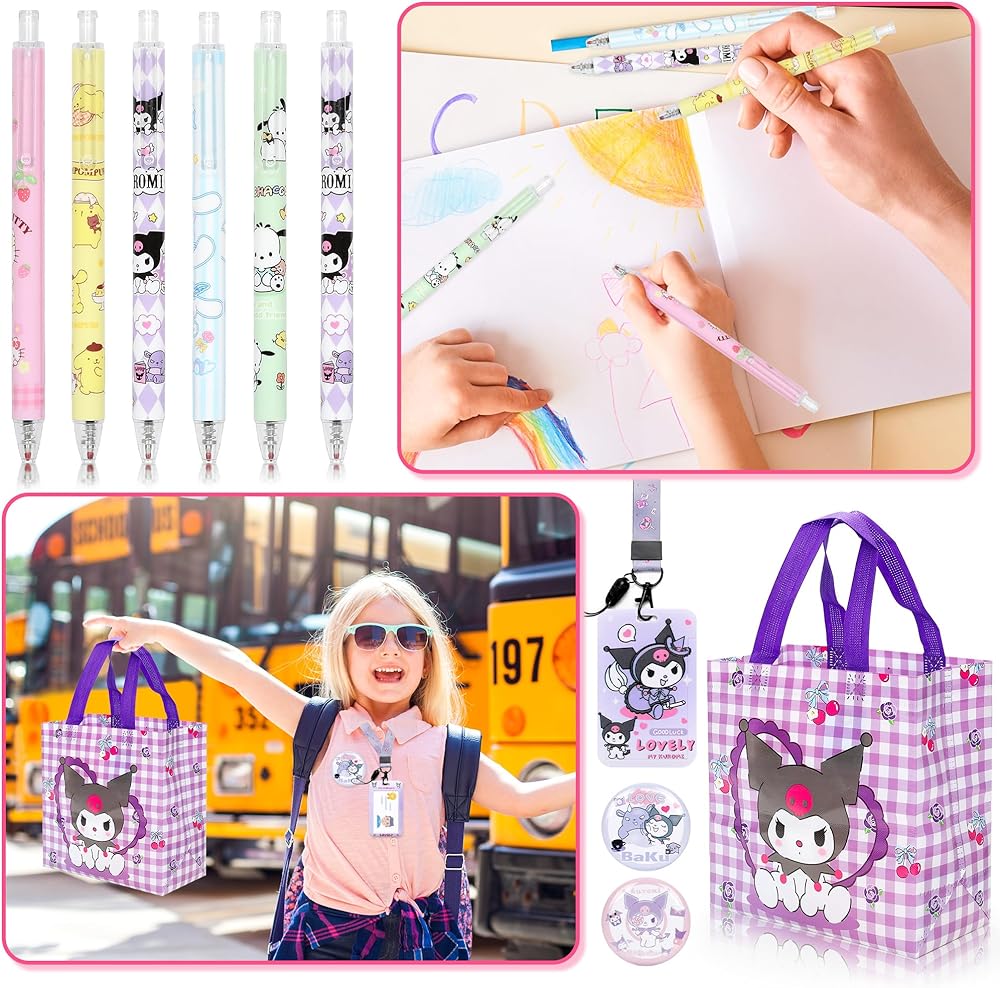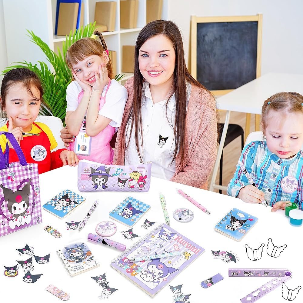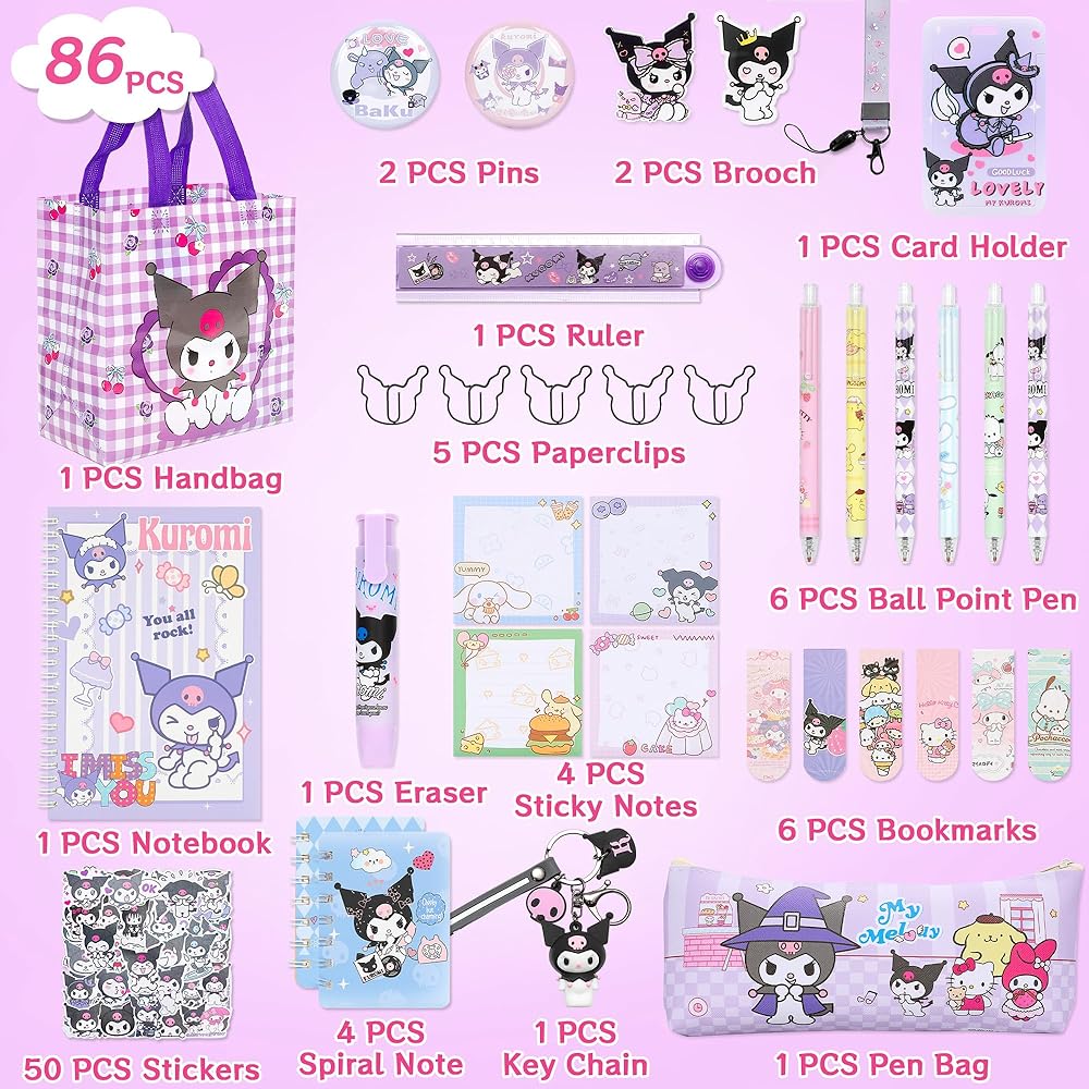 مجموعة اللوازم المدرسية اللطيفة من كارومي - 86 قطعة من مجموعة اللوازم المدرسية للأطفال تتضمن حقيبة قرطاسية وقلم وملصقات دفتر وبطاقة هوية ومسطرة ومسطرة وحقيبة حمل وسلسلة مفاتيح وبروش ومشبك ورقي