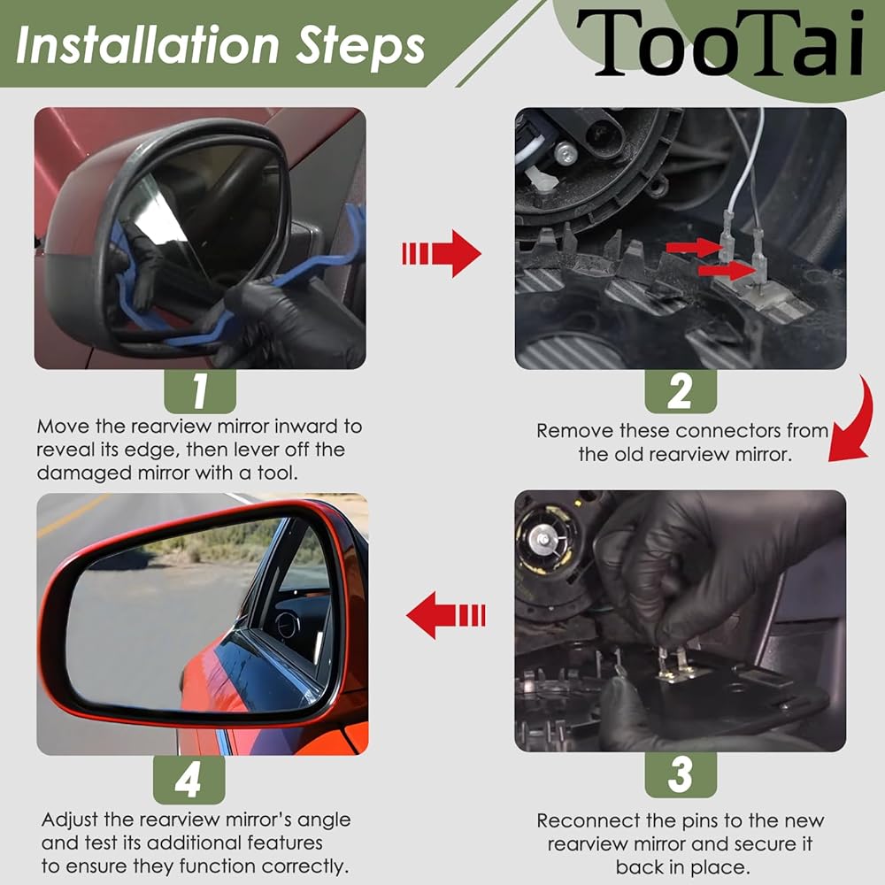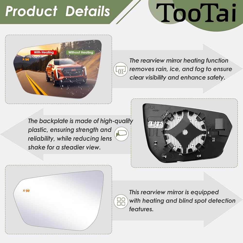 • [سعر سهل التركيب وصديق للميزانية]: ما عليك سوى إزالة زجاج المرآة القديم من جانب السائق. يجب أن تكون لوحة الدعم الجديدة متوافقة مع الأسلاك الكهربائية الموجودة، مما يتطلب فصل مجموعة الأسلاك عن اللوحة القديمة، ثم توصيلها بالجزء الخلفي الجديد، ويمكنك توفير الدولارات من أسعار الموزعين عن طريق شراء هذه اللوحة.