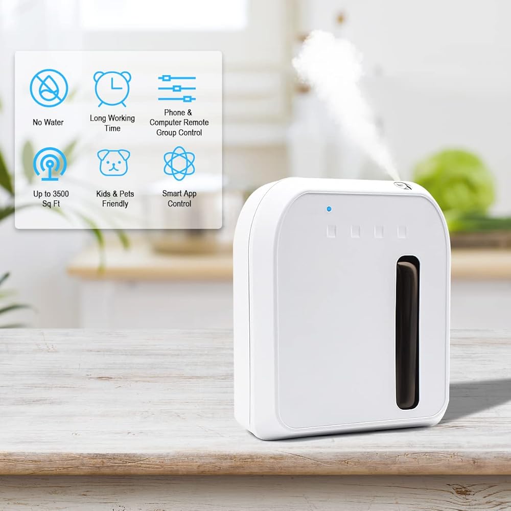جهاز توزيع الروائح العطرية للمنزل، موزع روائح العلاج بالبلوتوث والواي فاي مع تقنية الهواء البارد الذكية، 800 مل موزع روائح الزيوت العطرية الصامتة وبدون ماء يصل إلى 2500 قدم مربع للغرفة الكبيرة والمكتب
