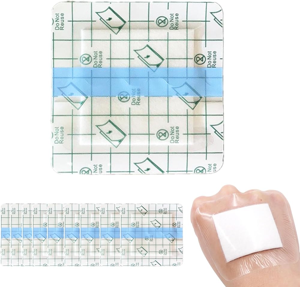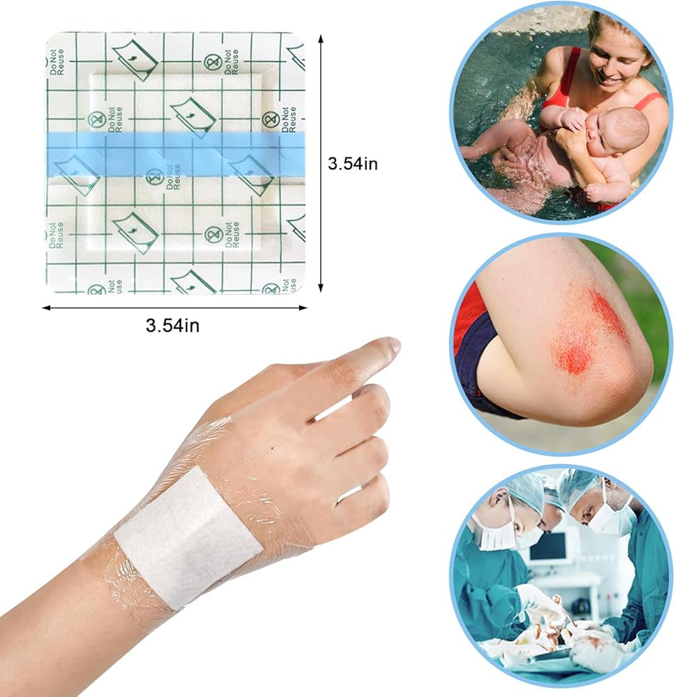 وسادات ضمادات جزيرة لاصقة للقسم، حاجز غطاء الجرح، رقعة ماصة، ضمادة شفافة مقاومة للماء - 10 قطع - 9 * 9 سم