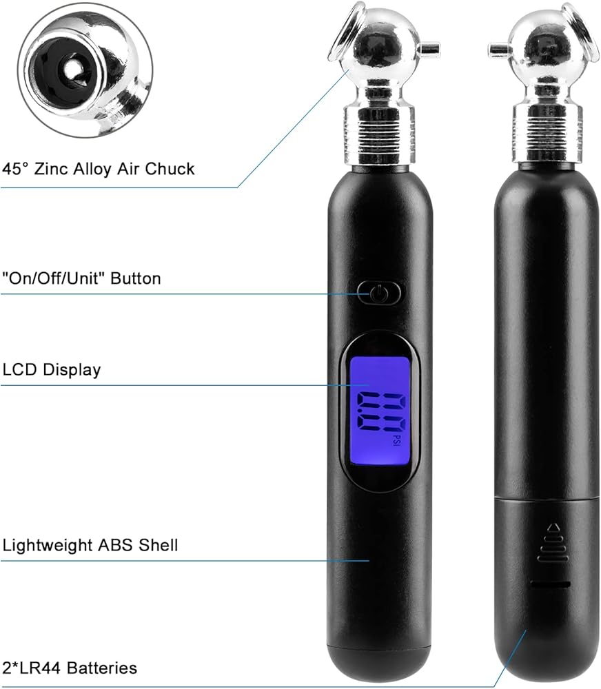 • هدية لطيفة للسائقين: مناسبة للسيارة أو الدراجة (مع صمام شريدر) أو الدراجة النارية. يعد مقياس ضغط الإطارات رفيقًا أساسيًا للمركبات