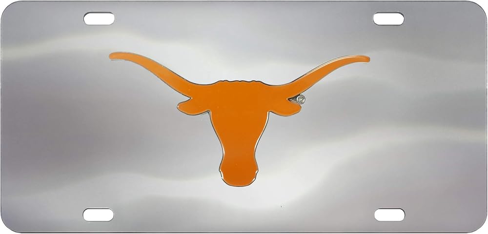 لوحة ترخيص أمامية من الفولاذ المقاوم للصدأ من FANMATS 26928 Texas Longhorns مع شعار معدني كبير مصبوب ثلاثي الأبعاد للفريق