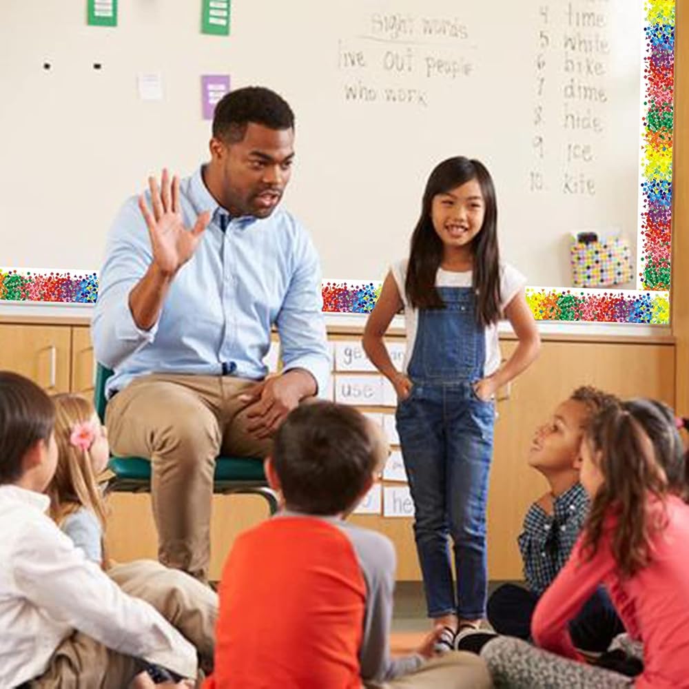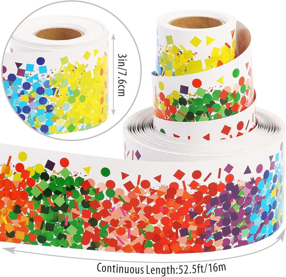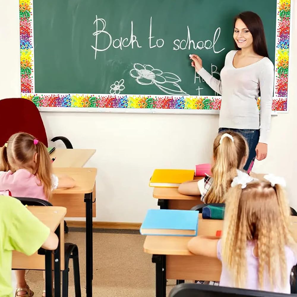 حدود لوحة إعلانات ملونة بطول 52.5 قدم، زخرفة حدود قصاصات قوس قزح لتزيين المدرسة والفصول الدراسية والمكاتب