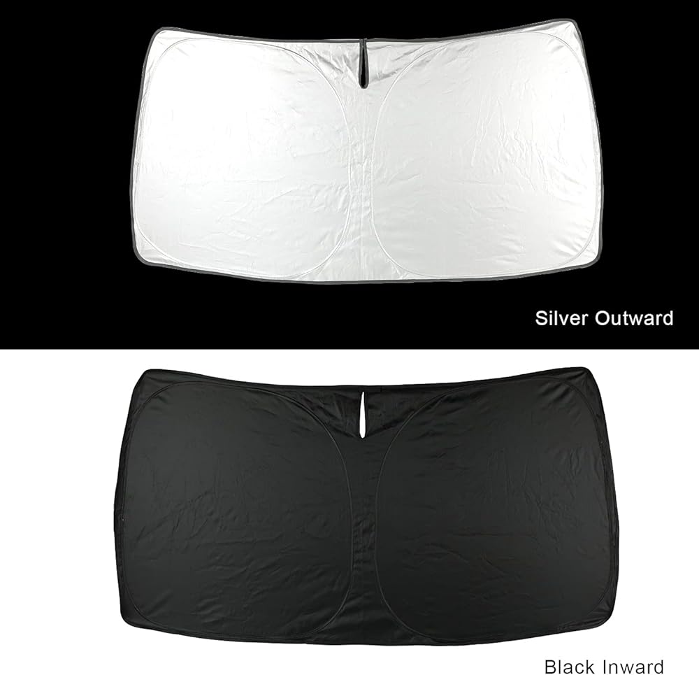 المادة والتصميم: مصنوع من أحدث البوليستر العاكس، ويتكون من طبقات عاكسة مزدوجة وطبقات عازلة حرارية مزدوجة يمكن أن تجعل التظليل والعزل أكثر فعالية، ويحافظ على برودة سيارتك ويحميها من الأضرار الناجمة عن أشعة الشمس الساخنة.