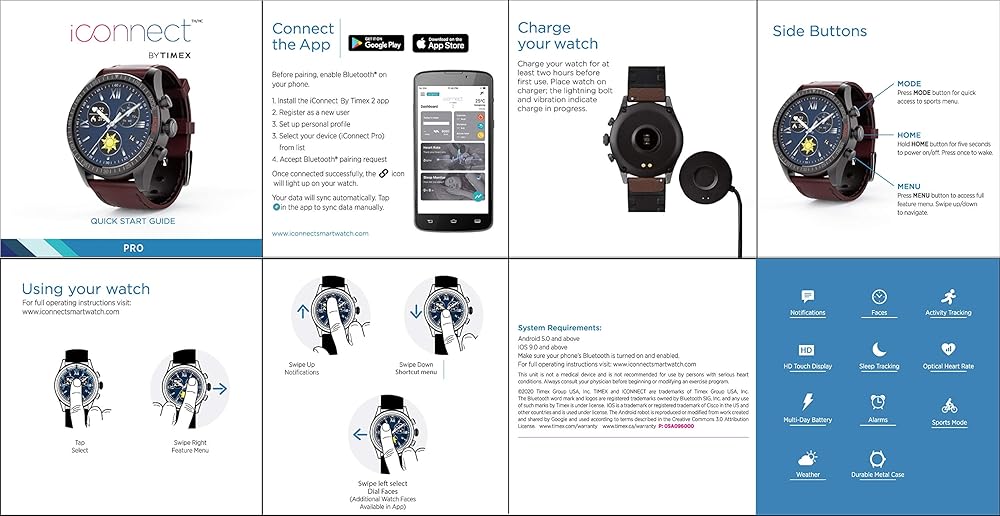 شاشة AMOLED ملونة عالية الوضوح مع وجه ساعة قابل للتخصيص؛ تطبيق iConnect by Timex 2 سهل الاستخدام ومتوافق مع Android 5.0 والإصدارات الأحدث وiOS 9.0 والإصدارات الأحدث