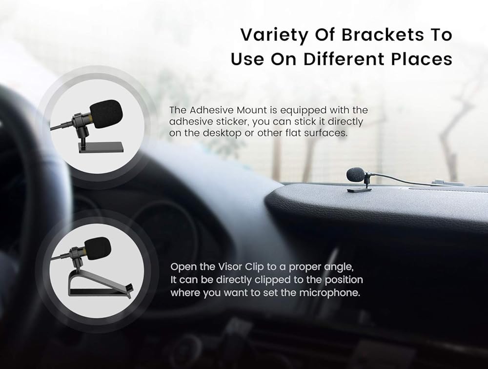 باستثناء مشبك lavalier، فإننا نوفر أيضًا تركيبتين مختلفتين للاستخدام في المزيد من السيناريوهات، حيث أن الحامل اللاصق مجهز بالملصق اللاصق، ويمكنك لصقه مباشرة على سطح المكتب أو الأسطح المسطحة الأخرى. يمكن قص Visor Clip مباشرة إلى الموضع الذي تريد ضبط الميكروفون فيه. إنه مثالي للمدونين الذين يسافرون بالسيارة.