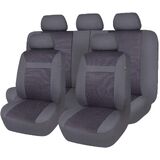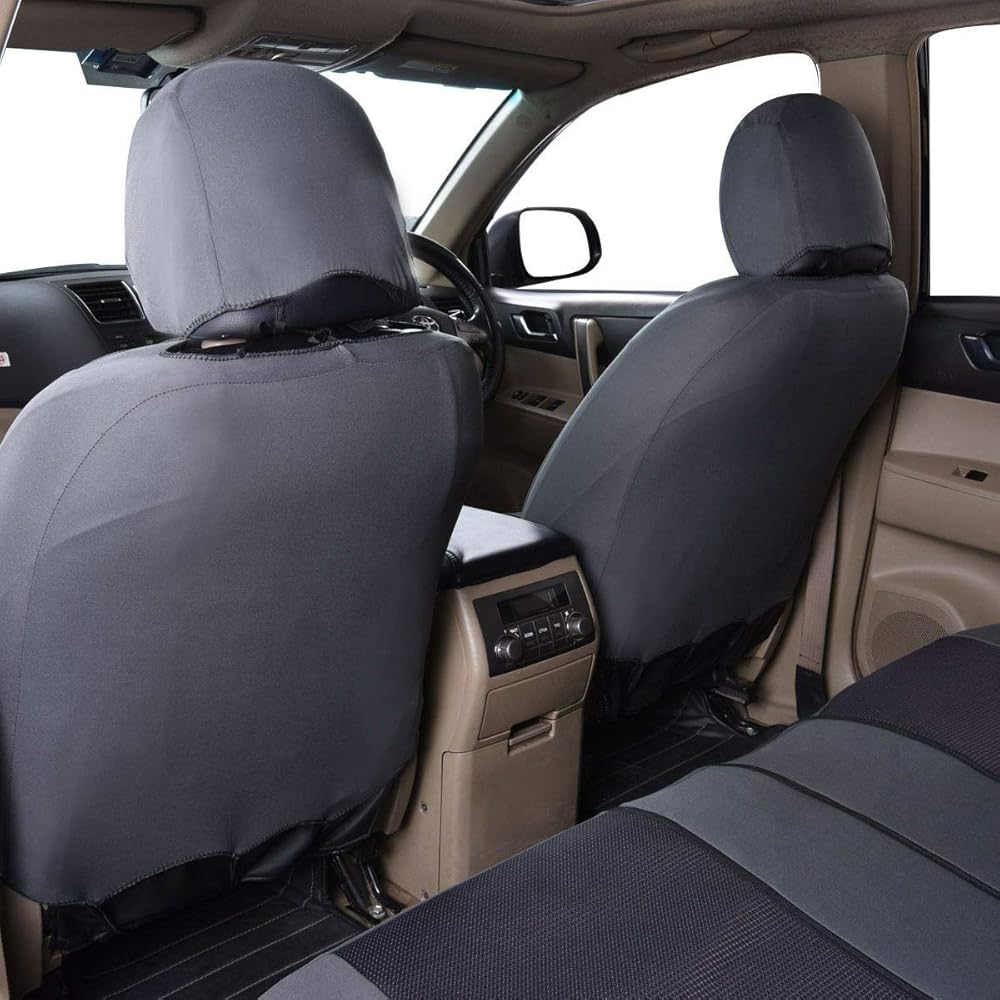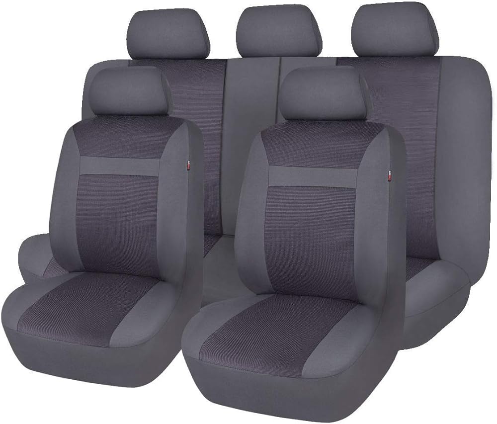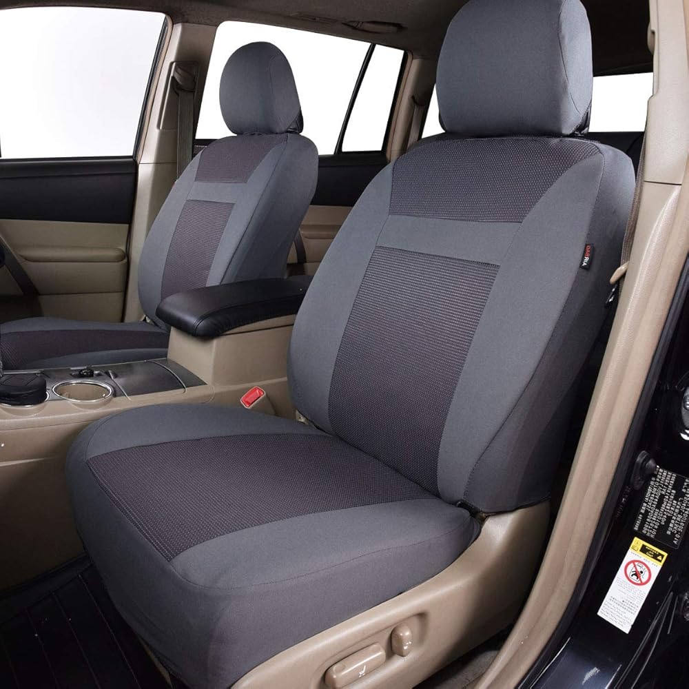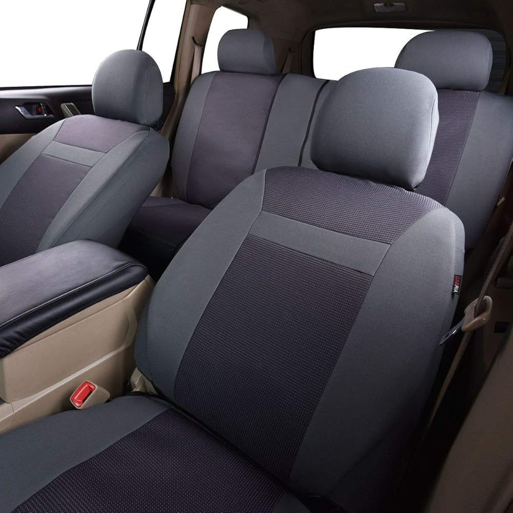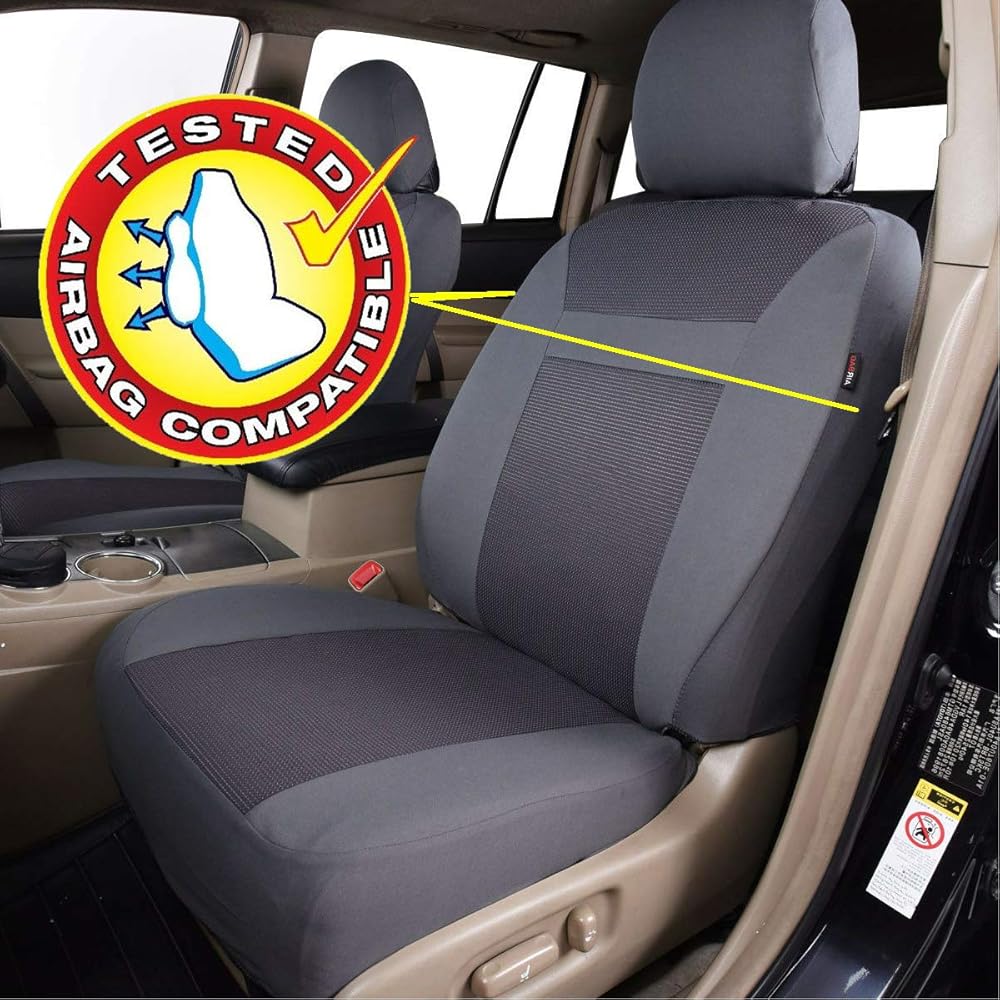 أغطية مقاعد السيارة فلاينج بانر، مجموعة كاملة من المقاعد الأمامية والمقعد الخلفي، واقيات مقاعد السيارة، واقيات غطاء الجاكار المتينة، شاحنة الدفع الرباعي، أسود، رمادي، تان (رمادي)