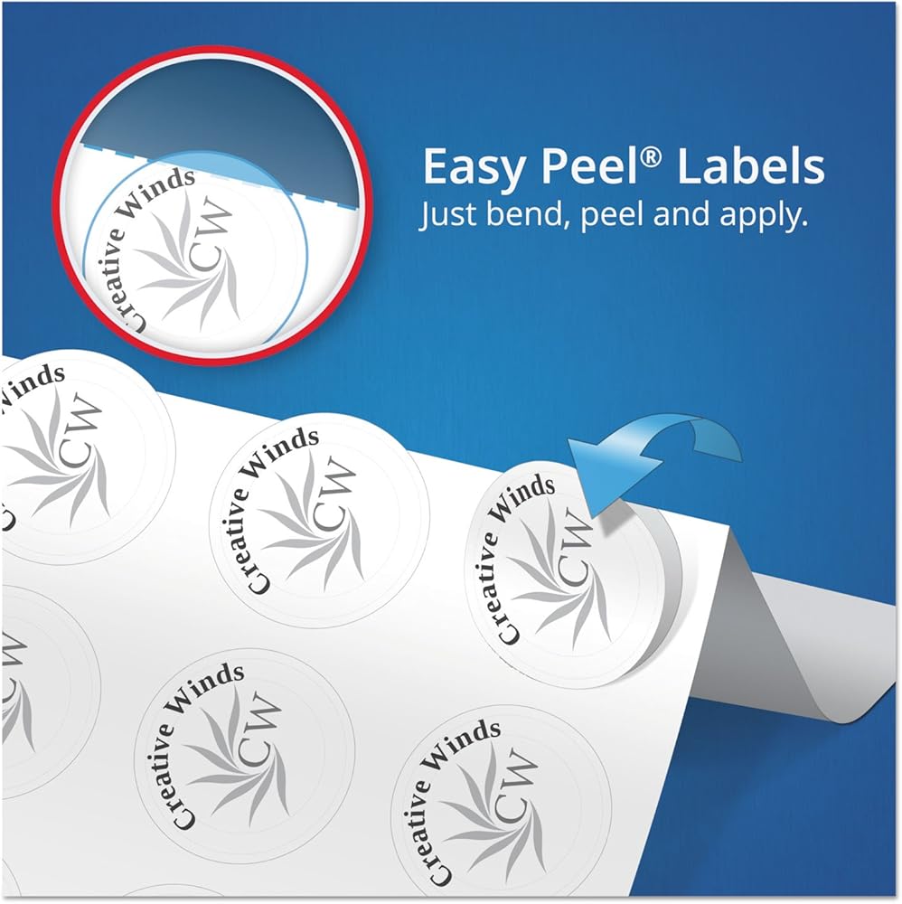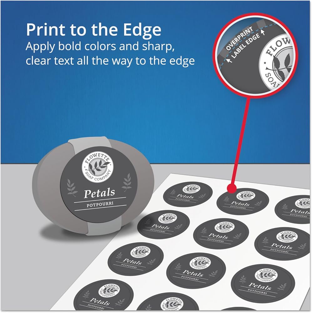 ملصقات Avery مستديرة مطبوعة إلى الحافة مع تغذية مؤكدة وسهلة التقشير، قطر 2 بوصة، شفاف لامع، 120/عبوة