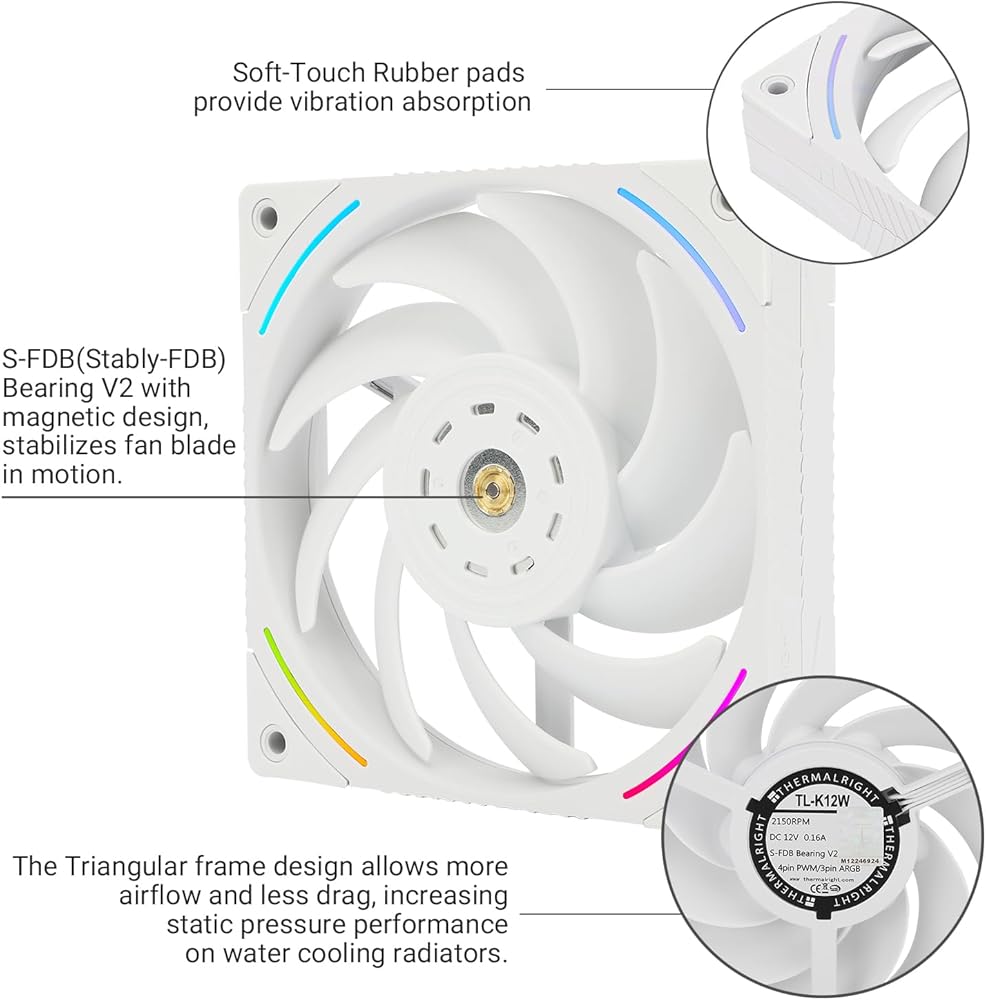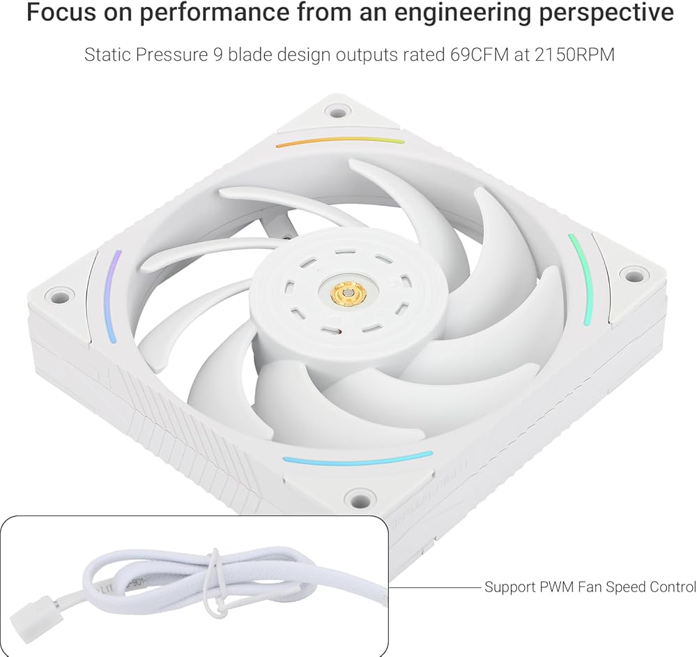 【مروحة PWM】 الطراز: TL-K12؛ الحجم: 120*120*25 مم؛ السرعة: 2150 دورة في الدقيقة ± 10%؛ الضوضاء ≥ 27 ديسيبل؛ الموصل: 4pin pwm؛ واجهة الإضاءة: 3pin ARGB، التيار: 0.2A؛ ضغط الهواء: 2.87 ملم ماء، تدفق الهواء: 69 قدم مكعب في الدقيقة؛ تدفق هواء أعلى لتحسين أداء التبريد، والحفاظ على الضوضاء عند مستوى منخفض.