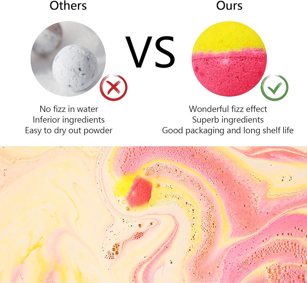 تأثير فوار رائع - بوصفها جيل جديد من كرات الاستحمام، فإننا نرفض الرتابة، لذلك تم تصميم جميع الكرات بشكل فردي. وبفضل المحتوى المرتفع من المكونات العضوية الطبيعية للعناية بالبشرة، تكون نسبة الكثافة أقل من الماء، لذلك يمكن للكرات أن تطفو على الماء مع نشر فقاعات ملونة، حيث تحتوي كل كرة على مجموعة متنوعة من التكوينات اللونية، ما يُتيح سحب دوامة ذات لون رائع على الماء لمنحك أفضل متعة بصرية.