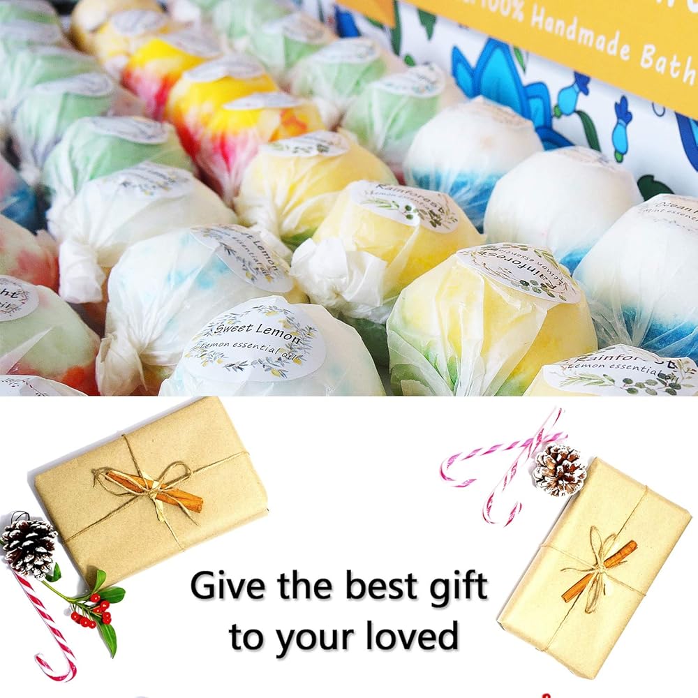 طقم هدية مكون من كرات استحمام عضوية، 50 كرة استحمام كبيرة مصنوعة يدويا للاطفال والنساء والرجال، هدية استحمام ذات تأثير فوار مثالية لعيد الحب والكريسماس واي ذكرى سنوية