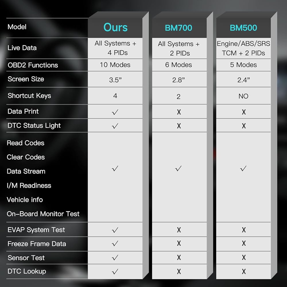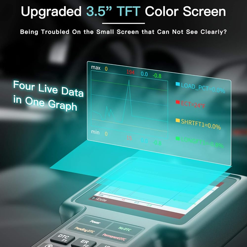 ماسح ضوئي يجب اقتناؤه للسيارة➤ 1️⃣ تحديث مجاني مدى الحياة عبر بطاقة TF (عمل خارج الصندوق، لا حاجة للتحديث قبل الاستخدام). 2️⃣ شاشة TFT مقاس 3.5 بوصة أكبر من 2.8 بوصة أو 2.4 بوصة في السوق. 3️⃣ 10 أوضاع وظائف obd2 (أكثر شمولاً من 6 أوضاع). 4️⃣ عرض تدفق بيانات جميع الأنظمة مع 4 PIDS. 5️⃣ طباعة البيانات التشخيصية للسجل. 6️⃣ أضف ضوء حالة DTC مع أربعة مفاتيح اختصار. 7️⃣ تغيير 8 لغات: الإنجليزية والفرنسية والإسبانية وألمانيا والإيطالية والروسية والبرتغالية واليابانية.