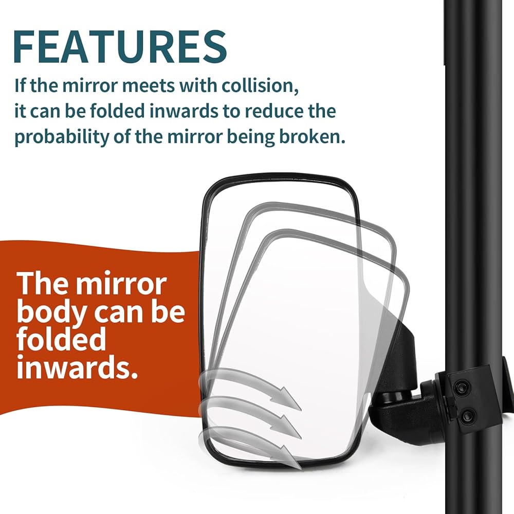 【الإعداد】مرآة الرؤية الجانبية هذه مناسبة لـ UTV مع أنبوب محزز، Ranger 1000 900، Ranger XP، General 1000، Defender Maverick Trail...