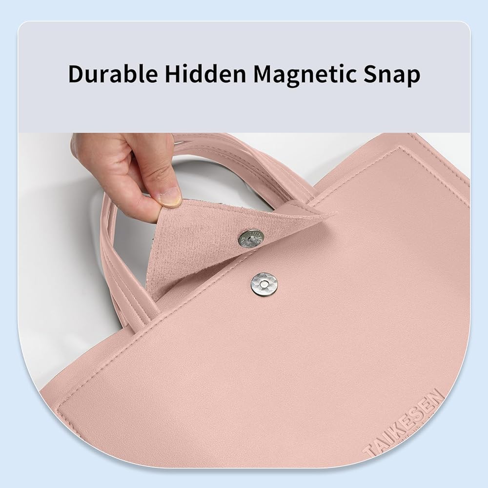 【تصميم مبتكر】المقبض المبطن أكثر راحة خاصة عندما تحتاج إلى حمل حقيبة الكمبيوتر المحمول لفترة طويلة. علاوة على ذلك، فإن المشبك المغناطيسي المخفي المتين يجعل من السهل الفتح والإغلاق بينما لن يؤدي المغناطيس إلى إتلاف الكمبيوتر المحمول الخاص بك.