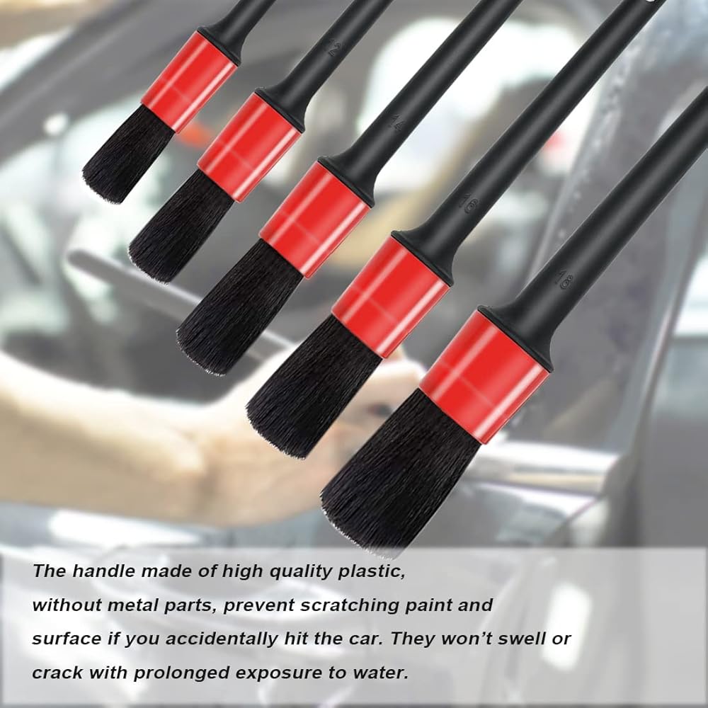 فرشاة تفاصيل السيارة بشعيرات سوداء: مصنوعة من البلاستيك عالي الجودة وشعيرات طويلة طبيعية قوية عالية الكثافة، مريحة وناعمة وقابلة لإعادة الاستخدام وقوية ومتينة. يمكن أن تمنع الخدوش على الطلاء والسطح. يمكن للفرشاة الأصغر أن تدخل في الشقوق الصغيرة. أو الزوايا أو الصواميل أو المساحة الضيقة، تقوم فرشاة الجعة بتنظيف الجزء الخارجي والمنطقة الأوسع بكفاءة أكبر.