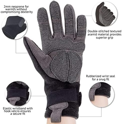 قفازات ماكو - مثالية لتطبيقات إنقاذ المياه والتجديف - يوفر النيوبرين 2 مم الدفء - سوار معصم مرن مزود بخطاف فيلكرو يضمن ملاءمة آمنة