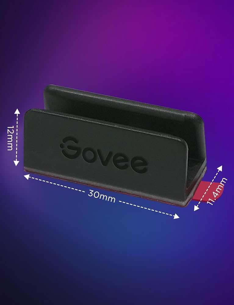 سهلة التركيب: دعامة ضوء حبل Govee تأتي مع لاصق خلفي قوي. عند التثبيت، قم بتمزيق الملصق أولاً، ثم قم بلصق الدعامة على الوضع الذي تريده، ثم اضغط لمدة 3 ثوانٍ، وسيلتصق الدعامة بقوة أكبر.