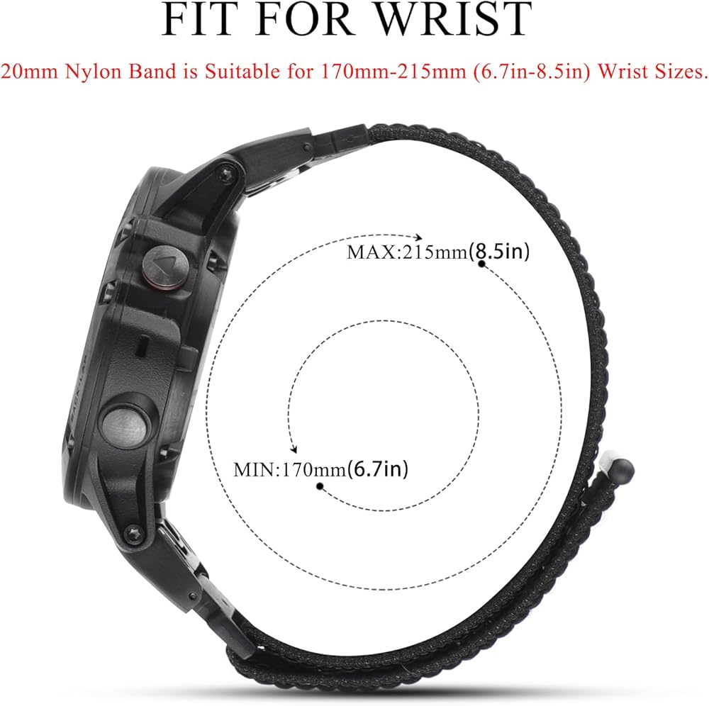 ⌚[نموذج متوافق]: حزام رياضي من النايلون مقاس 20 مم متوافق مع Garmin Fenix 7S Pro/Fenix 7S/Fenix 6S Pro/Fenix 6S/Fenix 5S Plus/Fenix 5S/Descent Mk2s. ⚠يرجى التأكد من رقم الطراز المكتوب على الجزء الخلفي من يتصل.