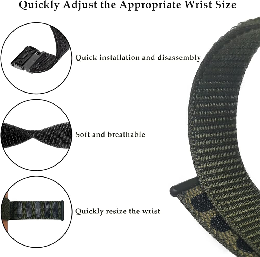 👍[مواد عالية الجودة]: حزام الساعة مصنوع من نايلون عالي الجودة، يمتص العرق وجيد التهوية، ومقاوم للأوساخ وسهل الجفاف، ومريح في الارتداء، وخفيف الوزن وقابل للغسل. إنه الخيار الأفضل لتسلق الجبال وركوب الدراجات وتسلق الصخور وغيرها من الألعاب الرياضية.