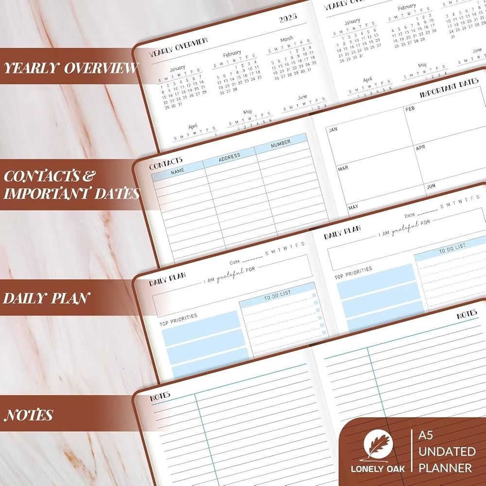 تصميم بسيط - التصميم البسيط والأنيق رائع بما يكفي لأي شخص. مخطط A5 الذي يبلغ مقاسه 5.8 × 8.5 بوصة، خفيف جدًا وقابل للحمل ليكون رفيقك الأفضل للعمل والدراسة اليومية.