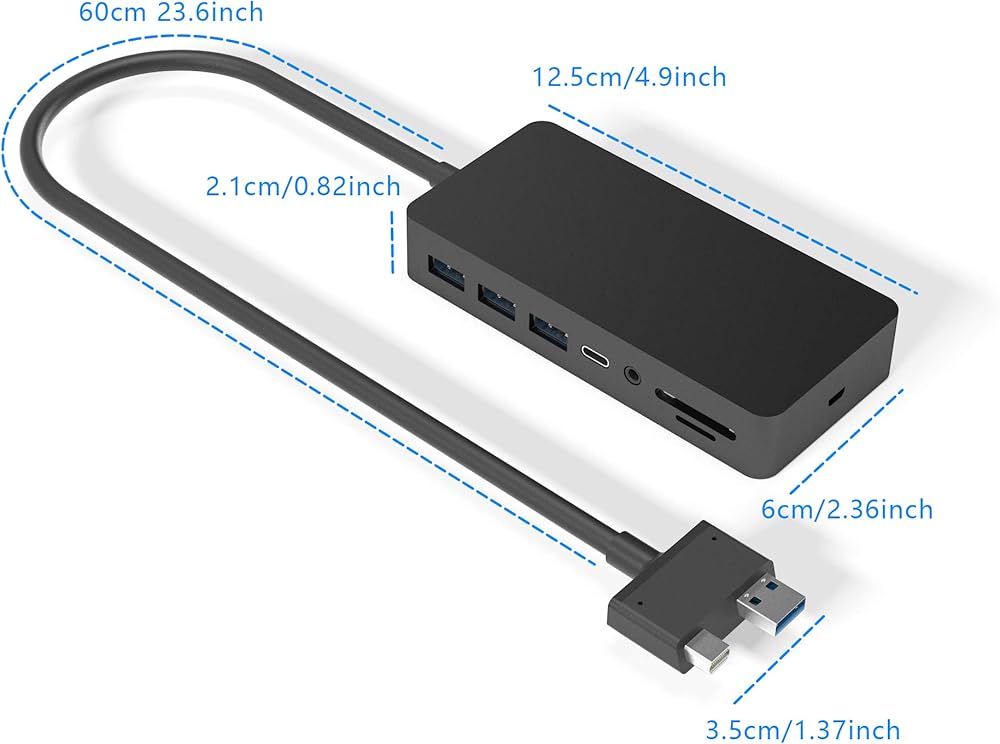 ✔️【MS Surface Pro Hub مع منفذ إخراج الصوت 】 استمتع بالاستماع إلى الموسيقى المفضلة لديك باستخدام سماعات الرأس السلكية الخاصة بك مع كابل كلاسيكي 3.5 ملم. نعم، هذا صحيح، على عكس 90% من الموزعات الموجودة، يتميز المحور الكبير الممتاز بمقبس صوت 3.5 ملم. لاحظ أنه لا يحتوي على ميكروفون. *ملاحظة: يأتي USB Hub أيضًا مزودًا بمنفذ Micro USB للحصول على الطاقة عند توصيل الأجهزة المتعطشة للطاقة مثل محركات الأقراص الثابتة الخارجية. لا يمكن لهذا المنفذ شحن الكمبيوتر المحمول.