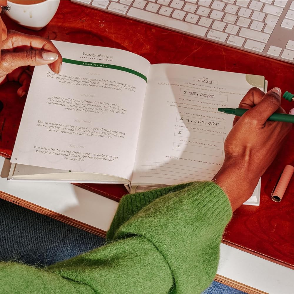 💰 حان الوقت للاستثمار في نفسك: احصل على الوضوح والتحكم في ميزانيتك من خلال مخططنا المالي. في الداخل، يمكنك العثور على مقالات مفيدة من الخبير المالي كالبانا فيتزباتريك وصفحات غير مؤرخة لمدة عام لمساعدتك على التخطيط والتسجيل والتفكير.