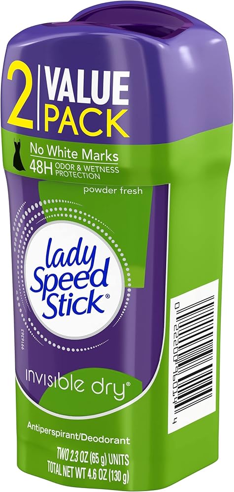مضاد التعرق ليدي سبيد ستيك، مسحوق جاف غير مرئي منعش، مزدوج، 2.3 أونصة، عبوة من قطعتين