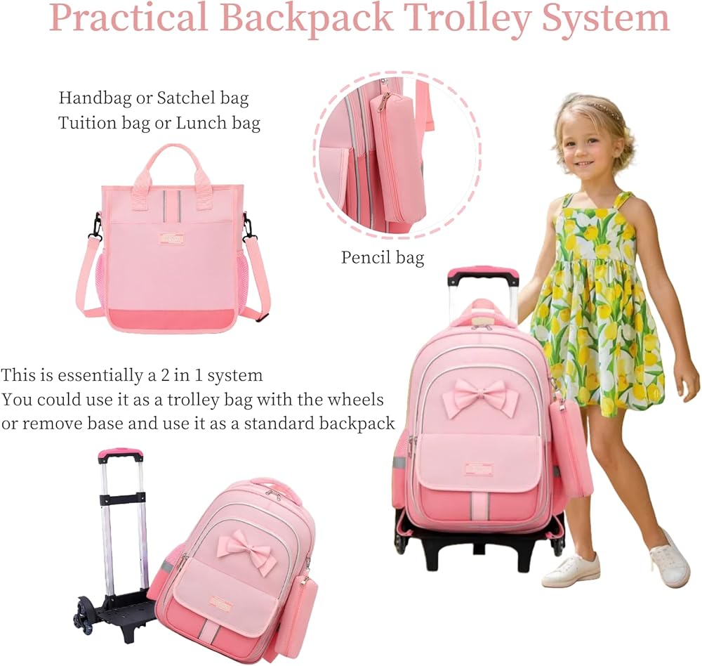 🎀【حقيبة ظهر عملية للأطفال مع حقيبة غداء】حقيبة الظهر المتدحرجة للفتيات هذه سهلة التجميع والإزالة، يمكنك استخدام حقيبة الظهر للفتيات فقط أو مع قاعدة العجلات معًا، يمكن اصطحاب حقيبة الظهر المدرسية بعجلات للأطفال على عجلات على الطائرات و القطارات، وهي مناسبة للمدرسة والعمل والرحلة والتخييم وغيرها من الأنشطة الخارجية