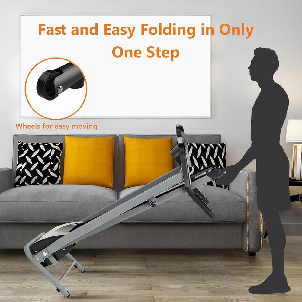 تصميم قابل للطي لتوفير المساحة: يمكن طي جهاز المشي المدمج والمحمول في 3 ثوانٍ فقط، مما يجعله مناسبًا جدًا للاستخدام في المنزل في المساحات الصغيرة والشقق والمكاتب. تأتي مع عجلات متحركة لسهولة الحركة.