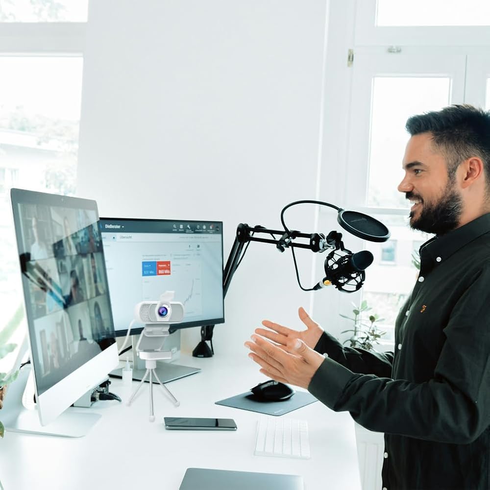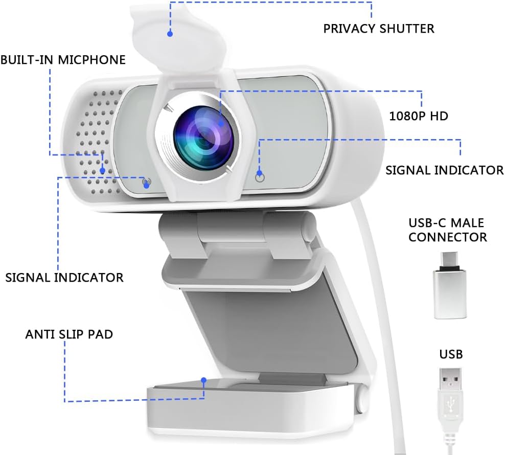 【حامل مرن قابل للتعديل ومغلاق للخصوصية】- يأتي مع حامل قابل للتعديل، يتكيف مع سيناريوهات الاستخدام المختلفة، سواء كان على سطح المكتب أو حامل ثلاثي القوائم، زاوية عرض 110 درجة تسمح لك بإيجاد التصوير المثالي ومصراع الخصوصية يحمي خصوصيتك الشخصية من الانسيابية. عندما لا تستخدم كاميرا الويب الخاصة بك