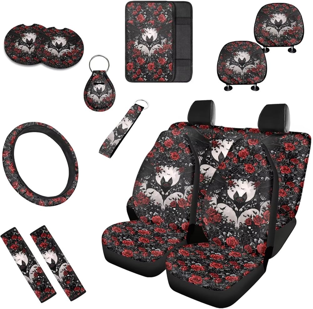 🚗【مجموعة غطاء مقعد السيارة الكاملة 13 قطعة】 تتضمن 2 غطاء مقعد السيارة الأمامي + 1 غطاء مقعد السيارة + 1 غطاء عجلة القيادة + 2 وسادة حزام مقعد السيارة + 2 قواعد حامل أكواب السيارة + 2 سلسلة مفاتيح + 2 غطاء مسند الرأس + 1 وسادة مسند الذراع . إنه خيار جيد لك للحفاظ على الجزء الداخلي للسيارة، وكذلك هدايا تزيين الموضة لإكسسوارات السيارة. ولكنها غير متوافقة مع المقاعد التي تحتوي على وسائد هوائية أو أحزمة أمان أو مساند للذراعين.
