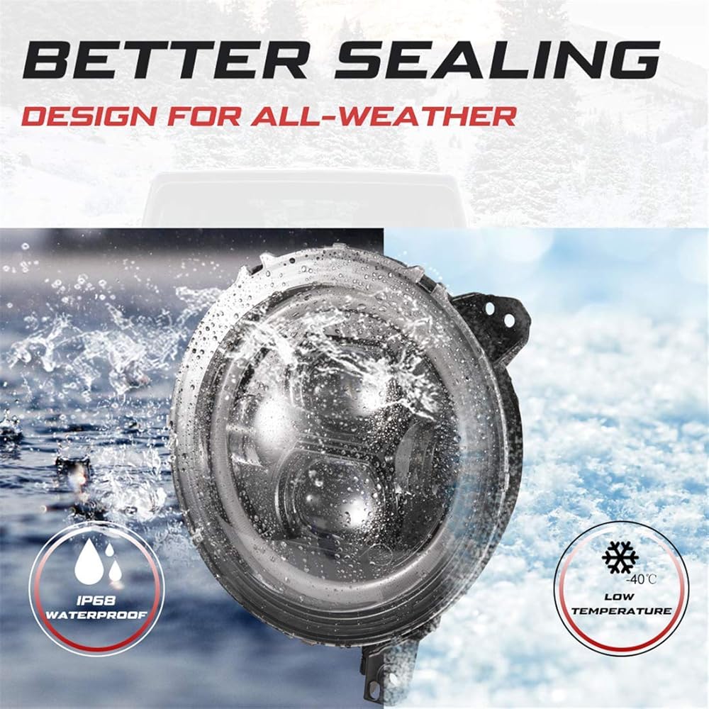 ▶ مصابيح أمامية WRANGLER JL عالية الجودة - مصنوعة من قاعدة ألومنيوم مصبوبة متينة وعدسة بولي كربونات، تصميم مضلع لتبريد فعال، وقوة كبيرة وخفيفة الوزن. مقاوم للصدأ والصدمات. غلاف مغلق، مقاوم للماء IP68، يصل العمر الافتراضي إلى 100000 ساعة. إنها تؤدي أداءً جيدًا وتوفر أفضل تجربة قيادة في الصحراء أو الطقس الضبابي أو الضباب المطري.