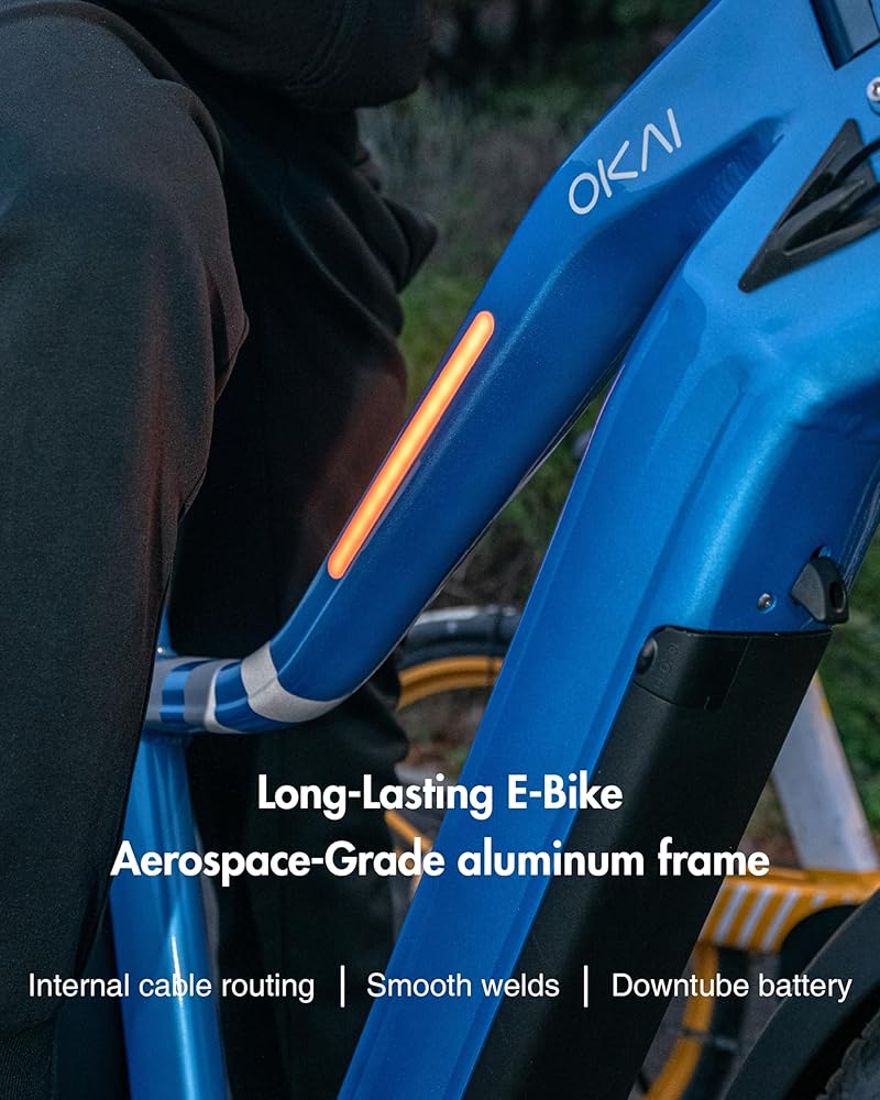 مصممة لتدوم طويلاً: تم تصنيع إطار كل دراجة OKAI Ranger من ألومنيوم عالي الجودة من الدرجة المستخدمة في مجال الطيران والفضاء، مما يضمن مزيجًا من المتانة والأداء والجماليات. إنها السيارة التي أنت متحمس لركوبها.