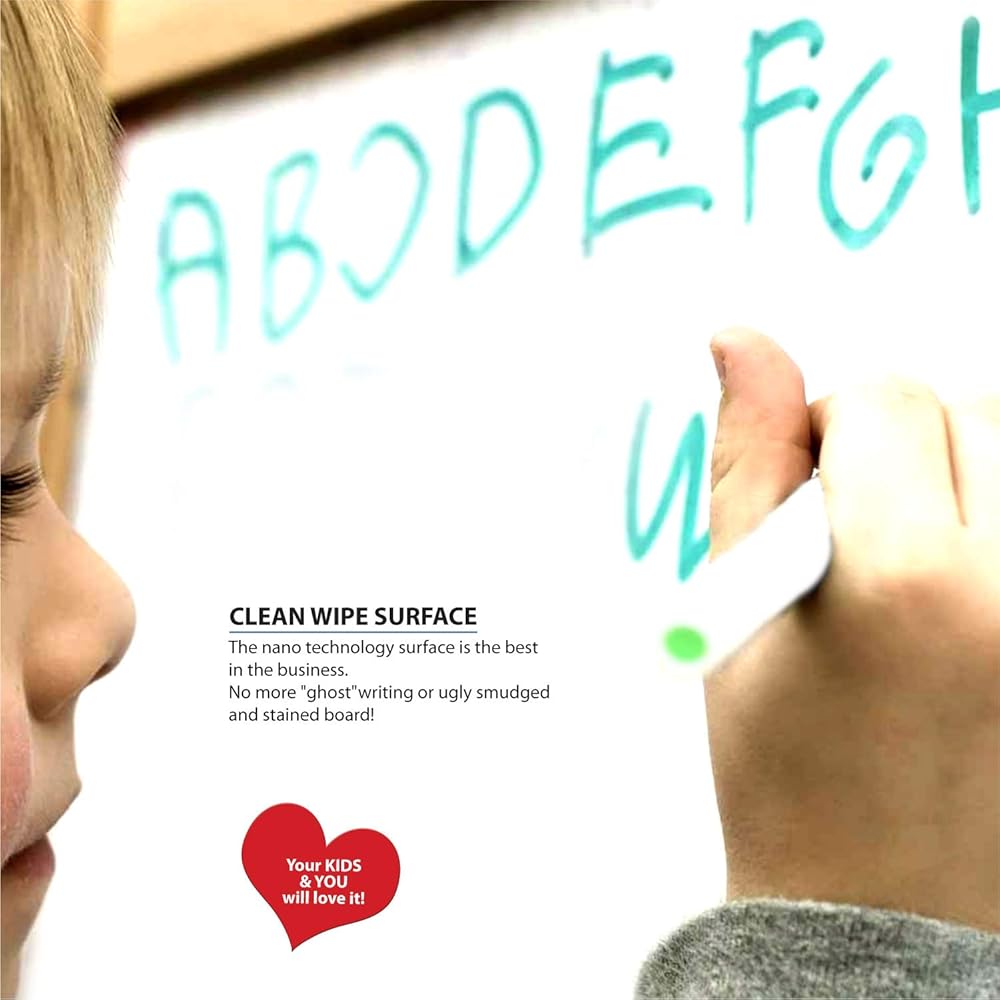 يعد تنظيف السبورة البيضاء المغناطيسية أمرًا بسيطًا، ما عليك سوى الكتابة والمسح وإعادة الاستخدام. لتنظيف اللوحة بالكامل، استخدم منشفة ورقية جافة للحصول على أفضل النتائج! مع ظهر مغناطيسي قوي، لن تنزلق اللوحة الخاصة بك أو تنزلق إلى أسفل الثلاجة. يبقى في المكان الذي تضعه فيه، وجاهزًا في متناول يدك!