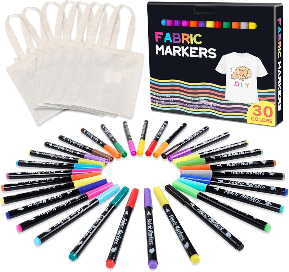 مجموعة أقلام تحديد النسيج من 30 لونًا من ABSOFINE، مجموعة أقلام تحديد فنية من 30 لونًا، طلاء قماش غير سام، لا يمحى ودائم، قلم تحديد النسيج للحقائب القماشية للتي شيرت والقبعات والملابس المصنوعة يدويًا