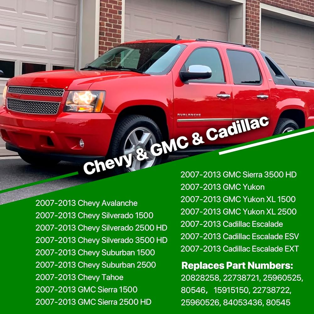 【التوافق: هذه المجموعة المكونة من 4 مقابض أبواب خارجية من الكروم متوافقة مع 2007-2014 كاديلاك إسكاليد، وتشيفي أفالانش، وسيلفرادو، وسوبربان، وتاهو، وجي إم سي سييرا، ويوكون. يرجى الرجوع إلى صفحة الوصف للحصول على قائمة مفصلة بالنماذج القابلة للتطبيق.